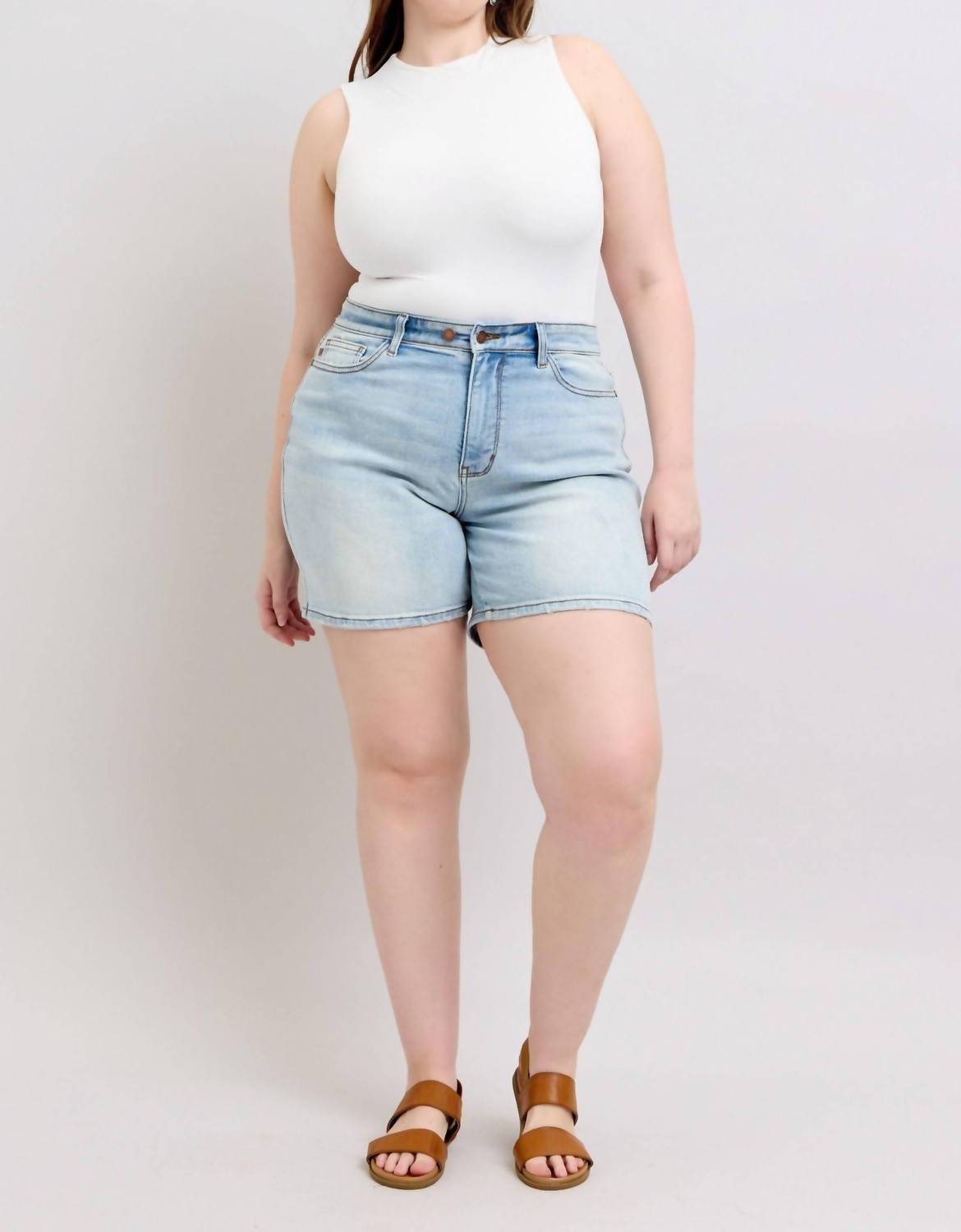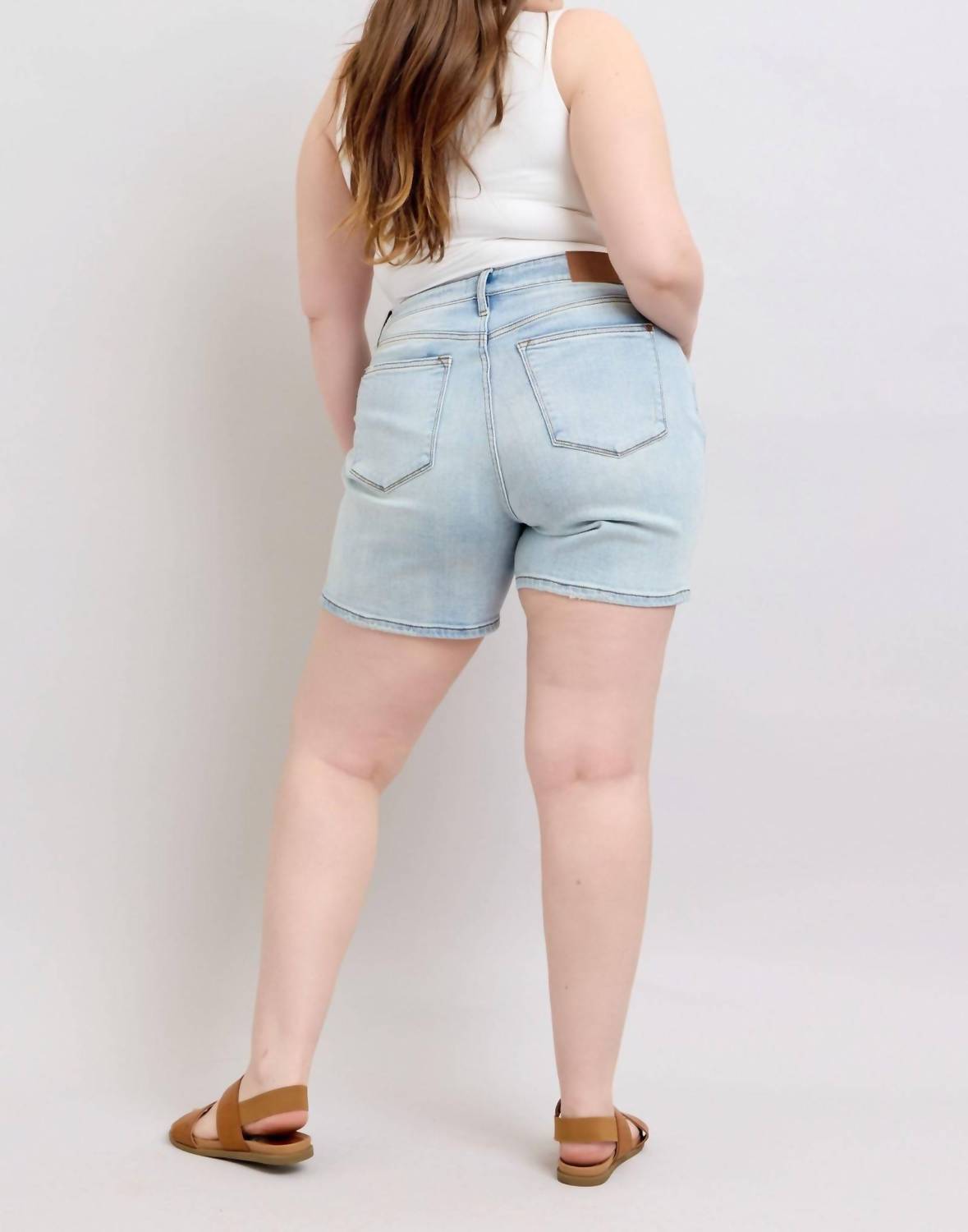 Descubra o Short Jeans Judy Blue de Cintura Alta e Comprimento Médio, um item essencial para o seu guarda-roupa de primavera, com um design minimalista e lavagem leve. Este short apresenta cintura alta confortável, fecho de dois botões e um padrão sólido com bolsos, perfeito para férias ou encontros casuais de Páscoa. Confeccionado em uma mistura de algodão composta por 93% algodão, 5% poliéster e 2% elastano, este short oferece um caimento perfeito com cós frontal de 26 cm e costura interna de 13 cm para os tamanhos P a GG, e cós frontal de 30 cm e costura interna de 16 cm para os tamanhos GG a 3GG. Cuide do seu jeans virando-o do avesso, lavando em água fria e secando ao ar livre ou em temperatura baixa.