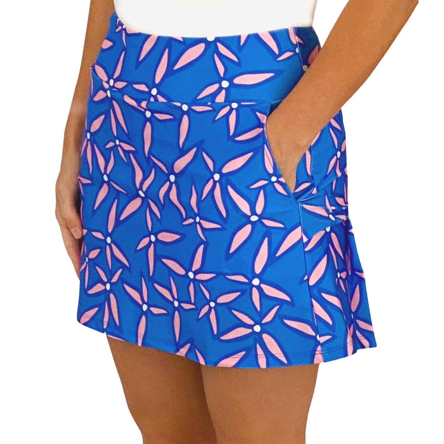 A saia-saia para usar em qualquer lugar e para qualquer ocasião que você vai adorar. Saia evasê frontal. Forrada com calcinha. Pregas nas costas. Comprimento de 40 cm. Estilo para vestir com shorts costurados combinando. 2 bolsos frontais e 1 traseiro. Tecido de desempenho superior VERSAWAY™. Proteção solar FPS 50+. 88% micropoliéster/12% elastano. Lavável à máquina. Nunca desbota, nunca faz bolinhas. FABRICADO NOS EUA.