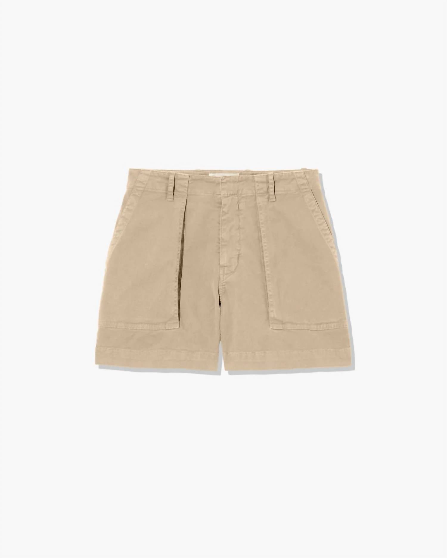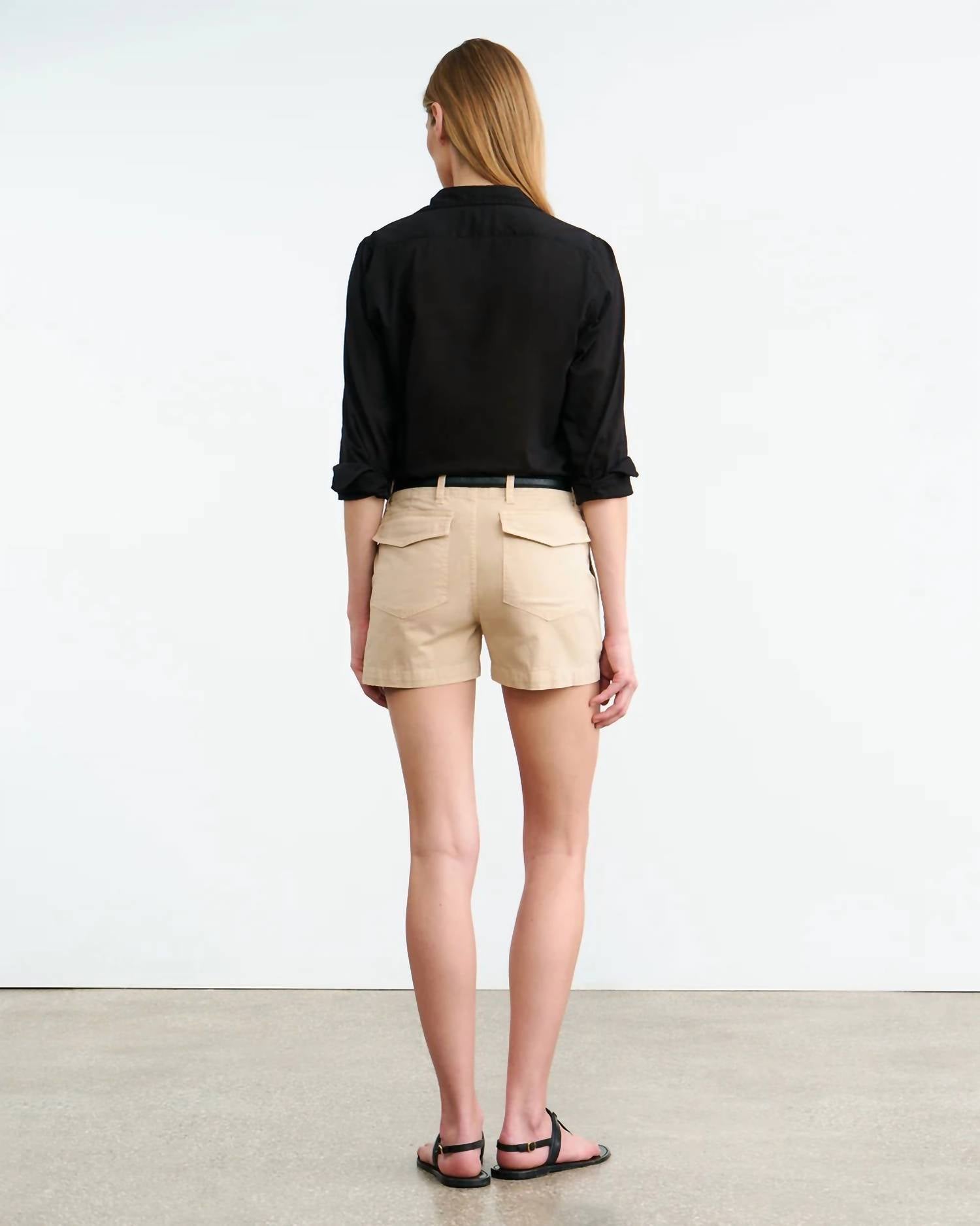 Apresentamos o Short Utility da NILI LOTAN, um item essencial do verão em um elegante tom arenito. Este short de cintura média é confeccionado em uma mistura de algodão (98% algodão e 2% elastano), oferecendo conforto e um toque de elasticidade. Com bolsos grandes na frente e atrás, ele é finalizado com braguilha com zíper e botão para um visual elegante. Fabricado nos EUA, este short é perfeito para um estilo minimalista de férias, com instruções fáceis de cuidar: lavar à máquina com água fria, secar em temperatura baixa e passar a ferro em temperatura baixa.