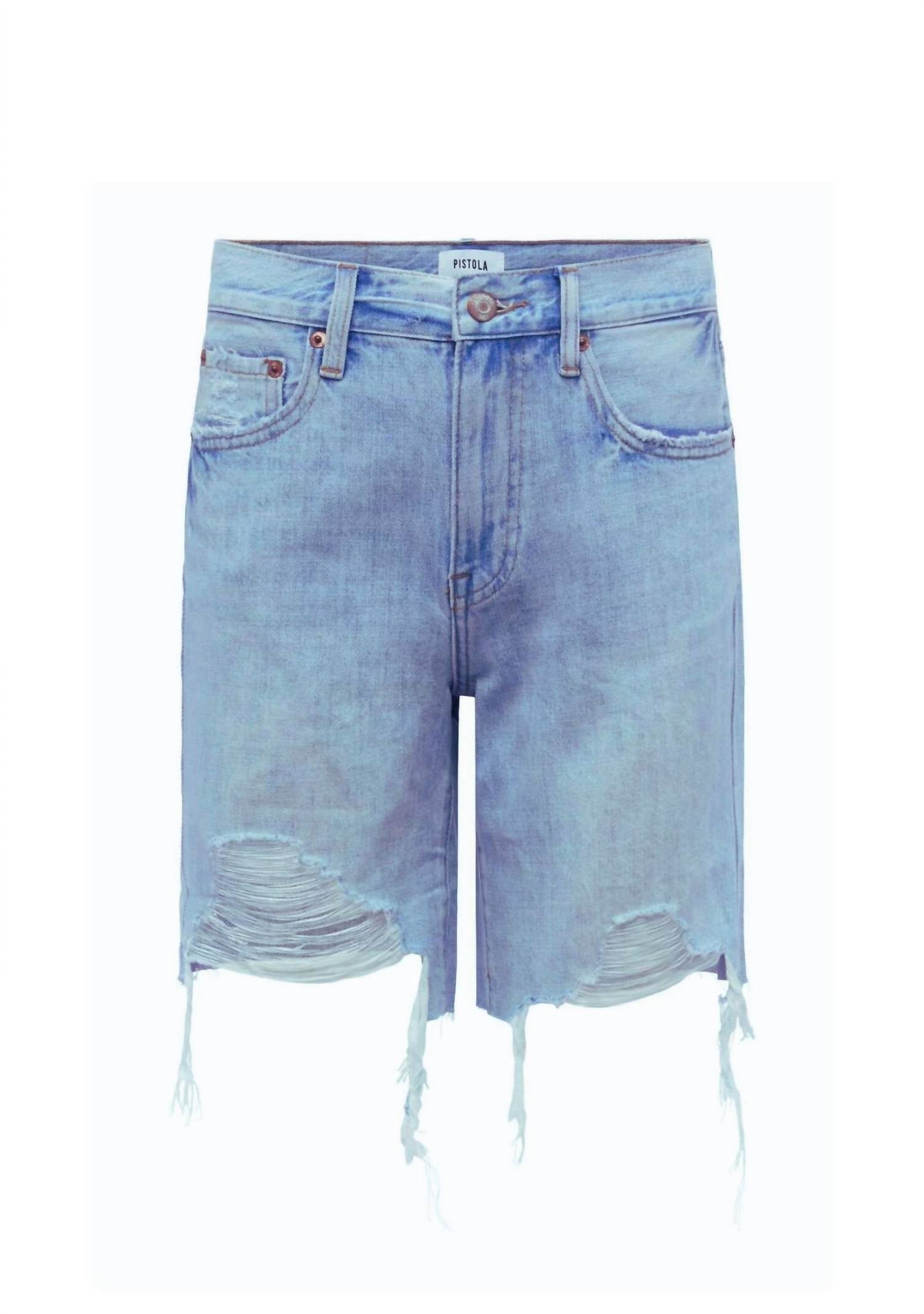 Você nunca pode ter shorts jeans demais e estes serão seus novos favoritos. O Kelly é um sonho inspirado nos anos 90. Um shorts skater que vai até o meio da coxa. Nossa versão deste estilo vintage descolado e descolado vem em uma lavagem leve e atemporal e apresenta desfiamento intenso nas bainhas. Shorts desgastado. Zíper frontal. Bolsos frontais. Bolso traseiro. Comprimento até o meio da coxa. Estilo versátil. 77% algodão, 23% rayon. Caimento relaxado, tamanho padrão dos EUA, tamanho real, tamanho menor para um visual ajustado. A modelo tem 1,75 m e veste 26. Lavar à mão com água fria, separadamente, alvejante sem cloro, pendurar para secar, passar a ferro frio, se necessário, do avesso.