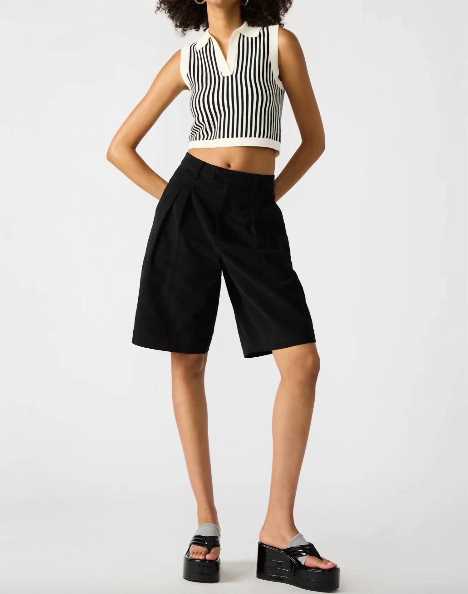 Coloque sua camiseta favorita dentro deste short de cintura alta para uma sensação mais casual e descolada. Apresentamos o Shorts Ivana da STEVE MADDEN, uma opção chique de cintura alta, perfeita para férias e passeios de verão. Este short preto liso é confeccionado em 100% algodão para respirabilidade natural e possui zíper e gancho para um ajuste seguro. Projetado com bolsos frontais funcionais para maior praticidade, este short oferece estilo e praticidade. Lavar somente à mão para manter seu visual minimalista. Alex tem 1,80 m e veste tamanho P.