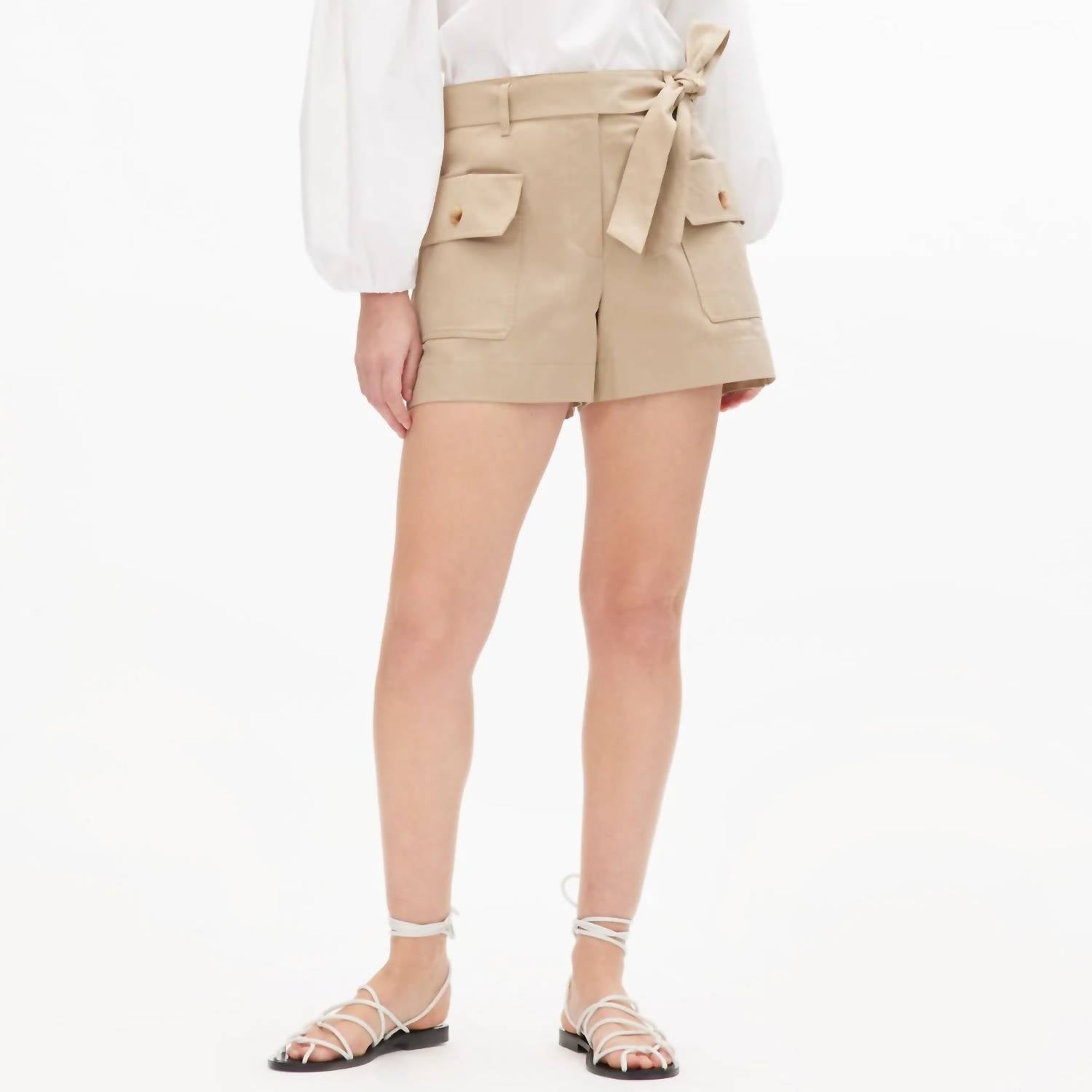 Coloque sua camiseta favorita dentro deste short de cintura alta para uma sensação mais casual e descolada. Eleve seu guarda-roupa de verão com o Shorts Feminino Erin da Tanya Taylor, confeccionado em um tom cáqui atemporal para um visual minimalista. Este short de cintura alta oferece um padrão sólido, perfeito para looks de férias. Projetado com a praticidade dos bolsos, ele combina forma e funcionalidade. Ideal para qualquer ocasião em clima quente, combine-o com suas blusas favoritas para um look chique e descontraído.