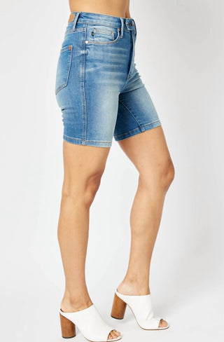 Judy Blue - Shorts de cintura média com controle de barriga e comprimento médio