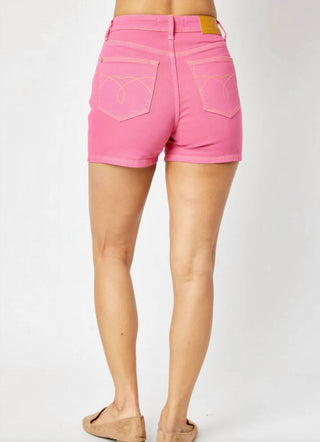 Judy Blue - Shorts de cintura alta com bandeira americana e bainha desfiada