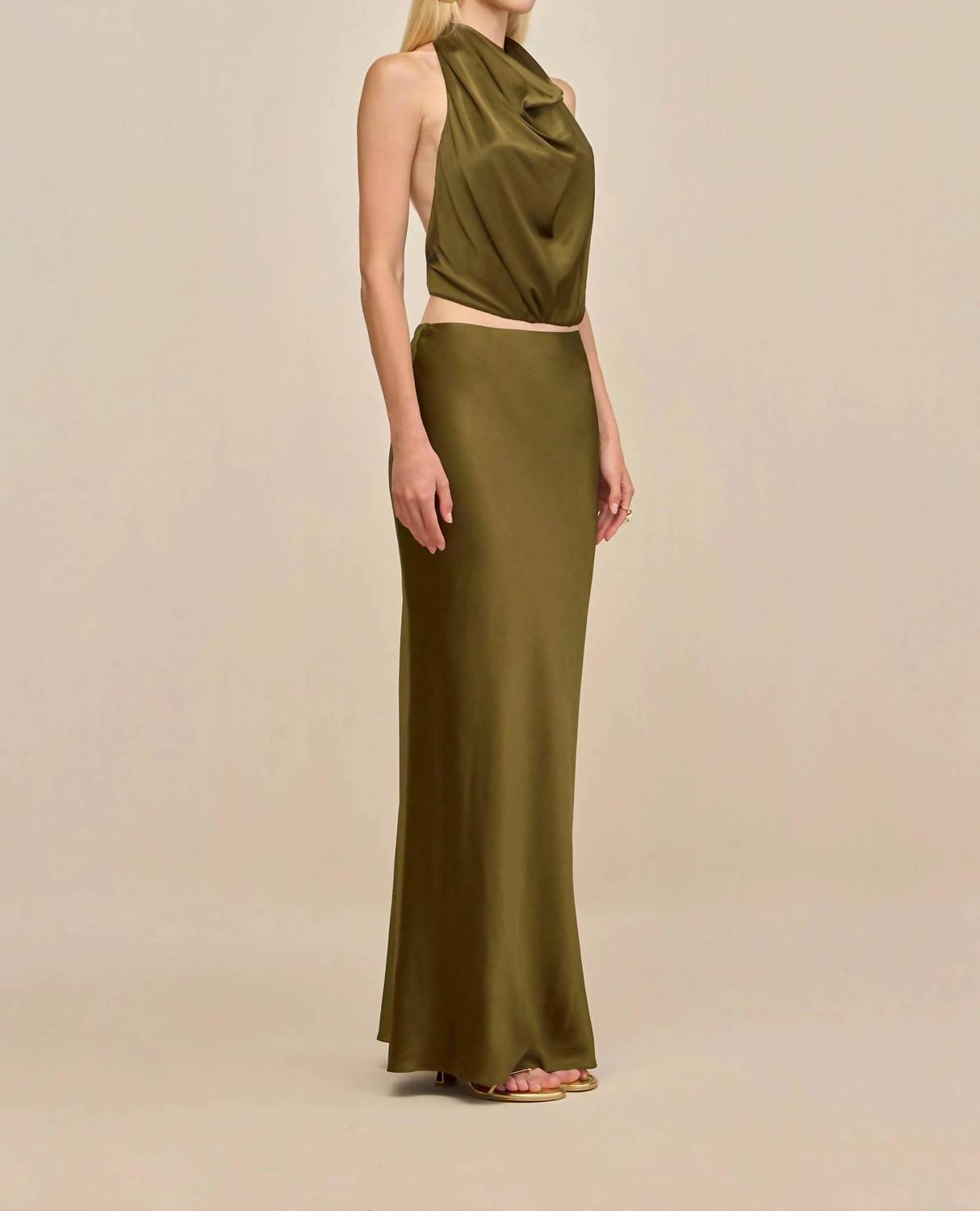 Who doesn't love a good maxi skirt? Embrace understated elegance with the Women's Chantel Skirt by Cult Gaia in a sophisticated Rosemary hue. Designed in a maxi length, this solid pattern skirt is cut on the bias from luxurious silk, offering a slight stretch for the perfect fit. Closure: Pull-on style. Ideal for a spring dinner party, it embodies the quiet luxury trend effortlessly.