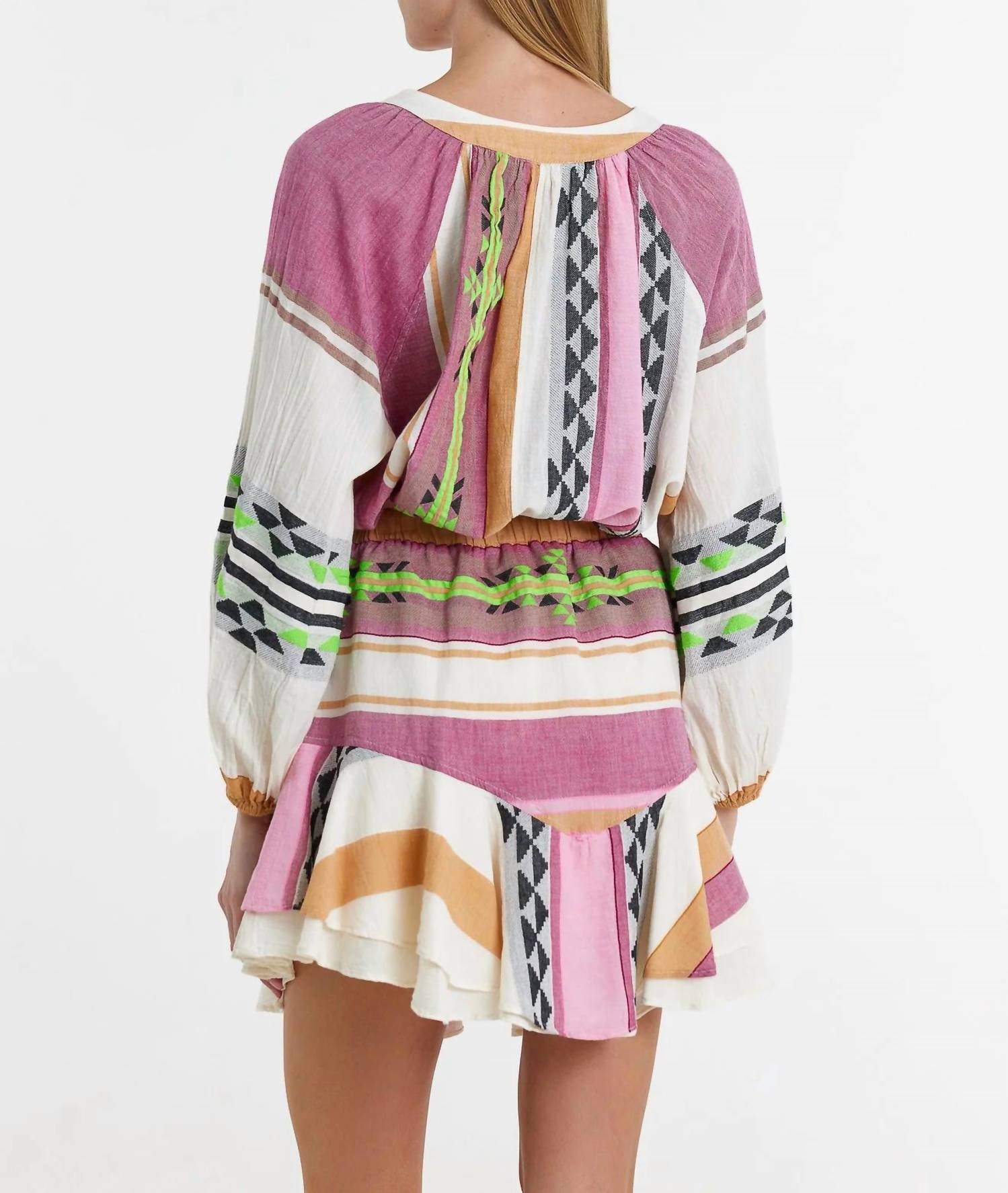 Introducing the Natalia Mini Skirt by DEVOTION TWINS, an eye-catching piece in pink and green with a playful pattern, perfect for any wardrobe. This skirt is made from polyester and boasts a mini length with gathered tiers and a hem frill, adding a touch of femininity. Designed for comfort with an elastic waistband, it features a pull-on closure. For easy care, simply machine wash and line dry as needed.