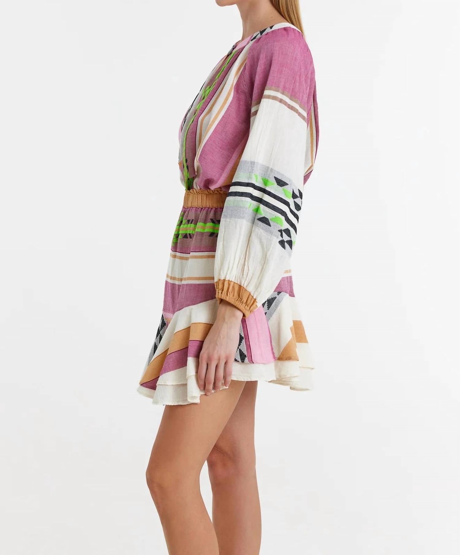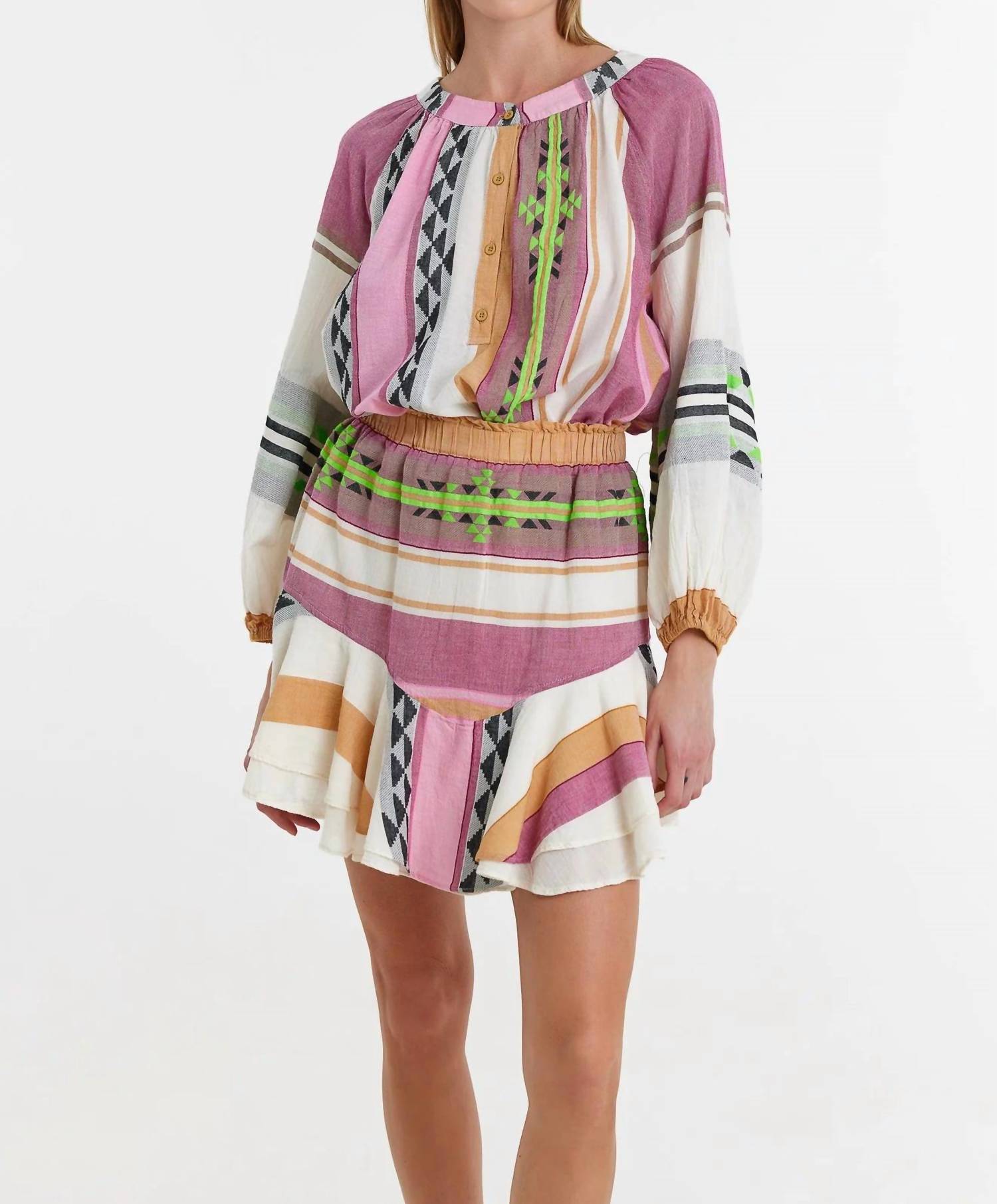 The perfect mini skirt does exist. Introducing the Natalia Mini Skirt by DEVOTION TWINS, an eye-catching piece in pink and green with a playful pattern, perfect for any wardrobe. This skirt is made from polyester and boasts a mini length with gathered tiers and a hem frill, adding a touch of femininity. Designed for comfort with an elastic waistband, it features a pull-on closure. For easy care, simply machine wash and line dry as needed.