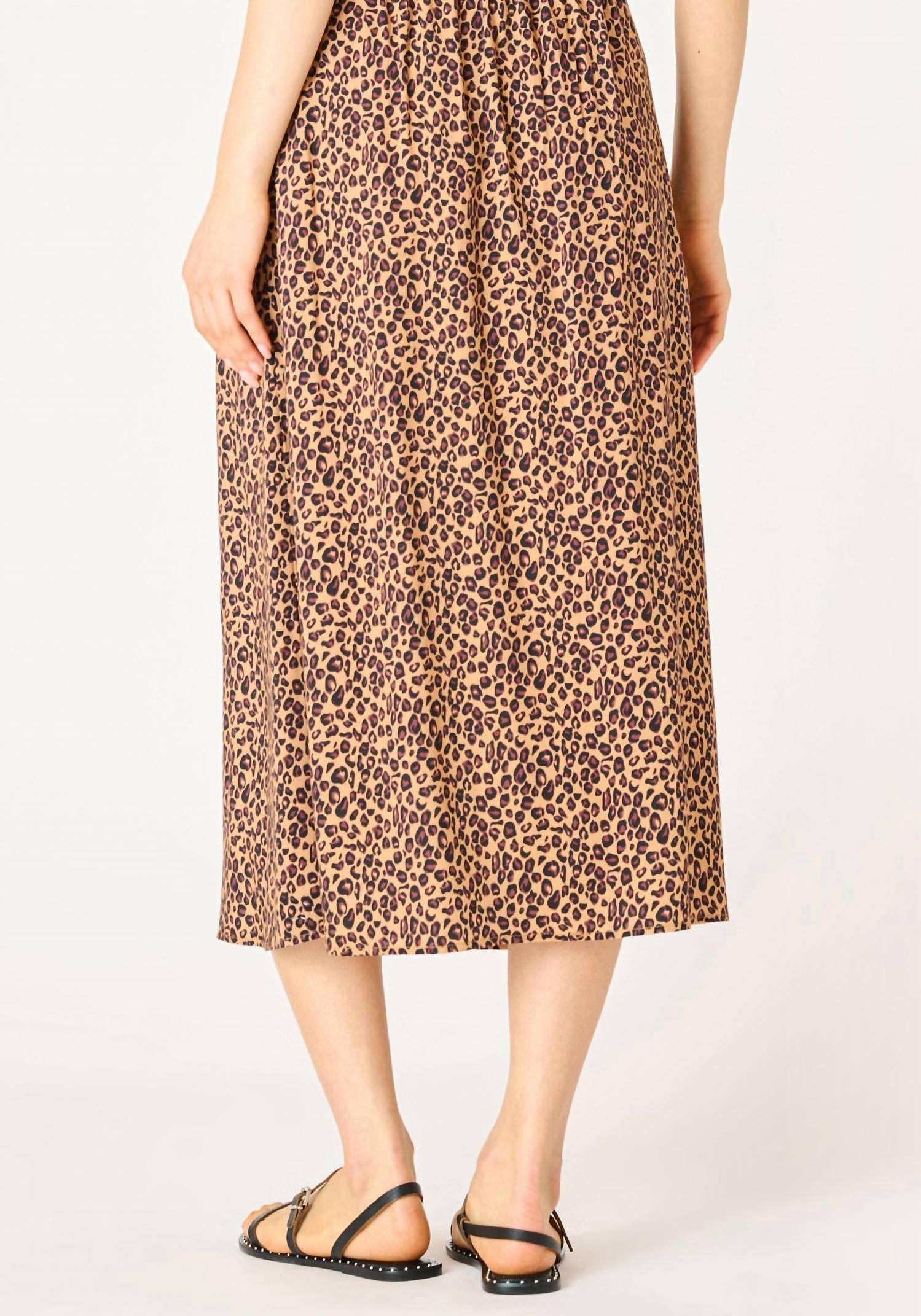 Embrace a playful boho chic vibe with the Leopard Midi Skirt by Dex Clothing, a standout piece characterized by its unique animal print. With its sleeveless, A-line silhouette, this skirt is designed for comfort, falling gracefully to a midi length. The button closure is complemented by convenient pockets, making it as functional as it is fashionable. Care for this versatile piece is simple: machine wash and lay flat to dry.