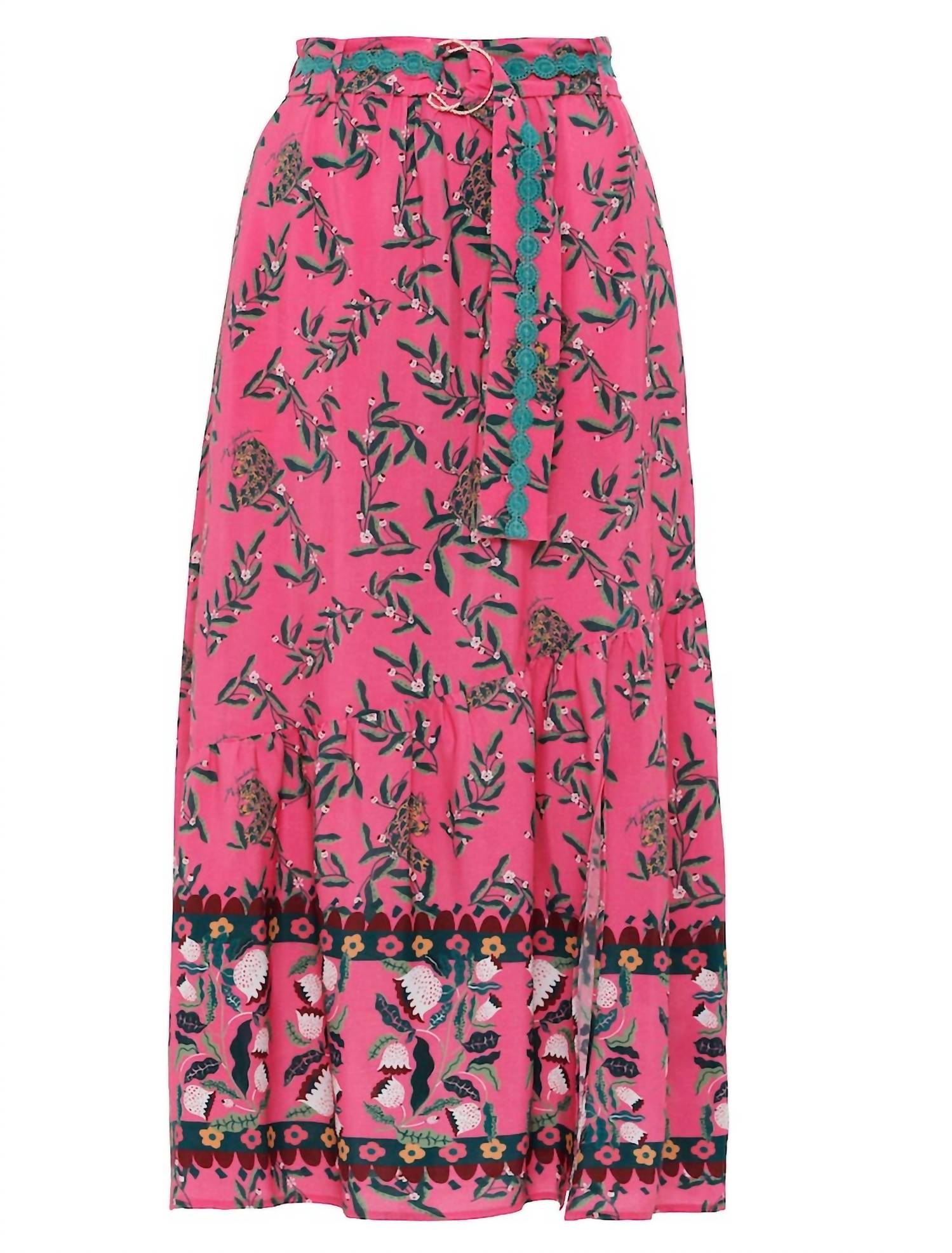 Esta saia midi CAROLINA da Emily Lovelock com esta deslumbrante estampa floral rosa e verde é a maneira perfeita de iluminar o seu estilo do dia a dia. As estampas da Emily Lovelock são um charme e são confeccionadas em crepe de viscose fluido. Adoramos os detalhes e o cós reto na frente com elástico nas costas para um ajuste fácil. Zíper lateral e fenda frontal para mostrar um pouco das pernas. Tamanho real.