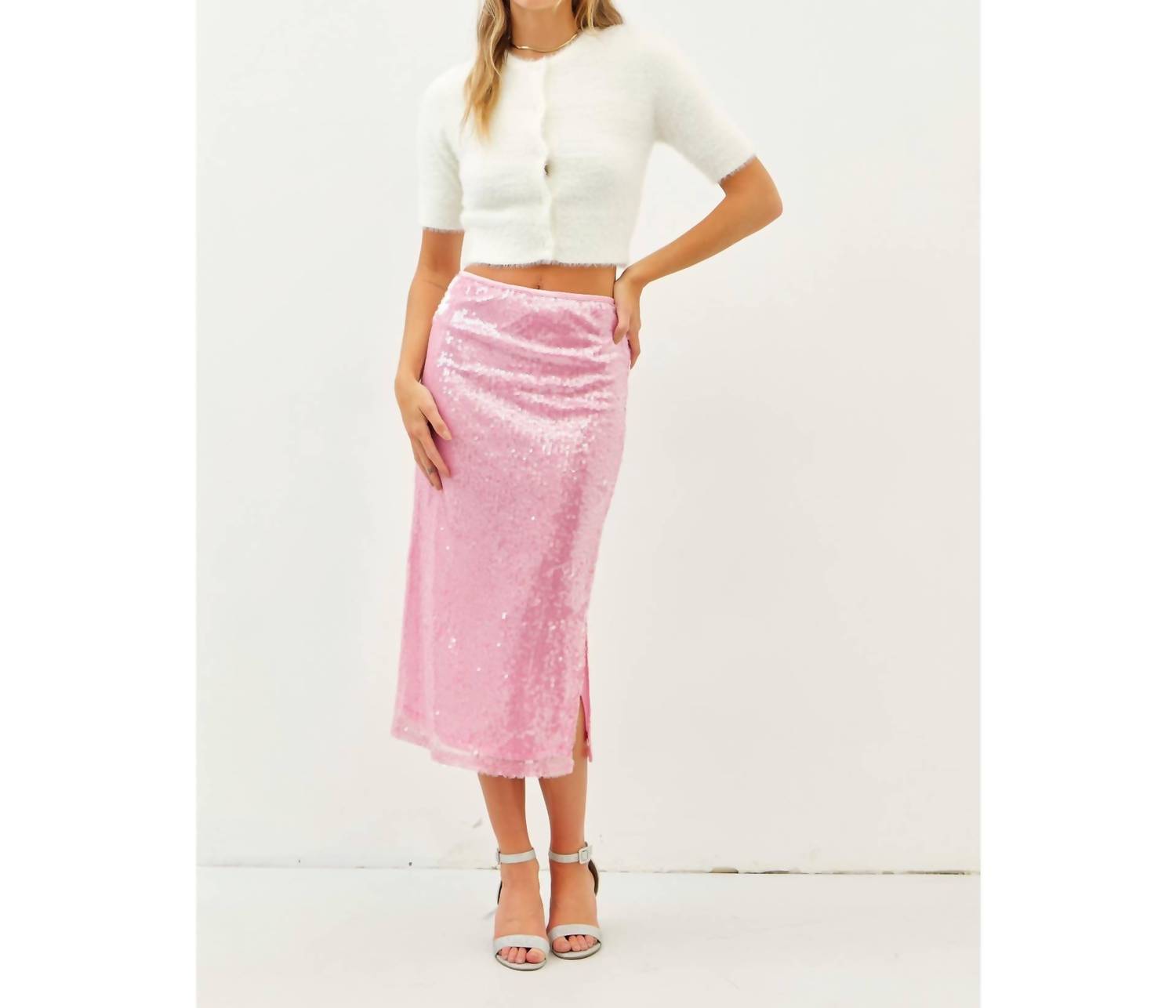 Idem Ditto - Mermaid Sequin Midi Skirt With Side Slit