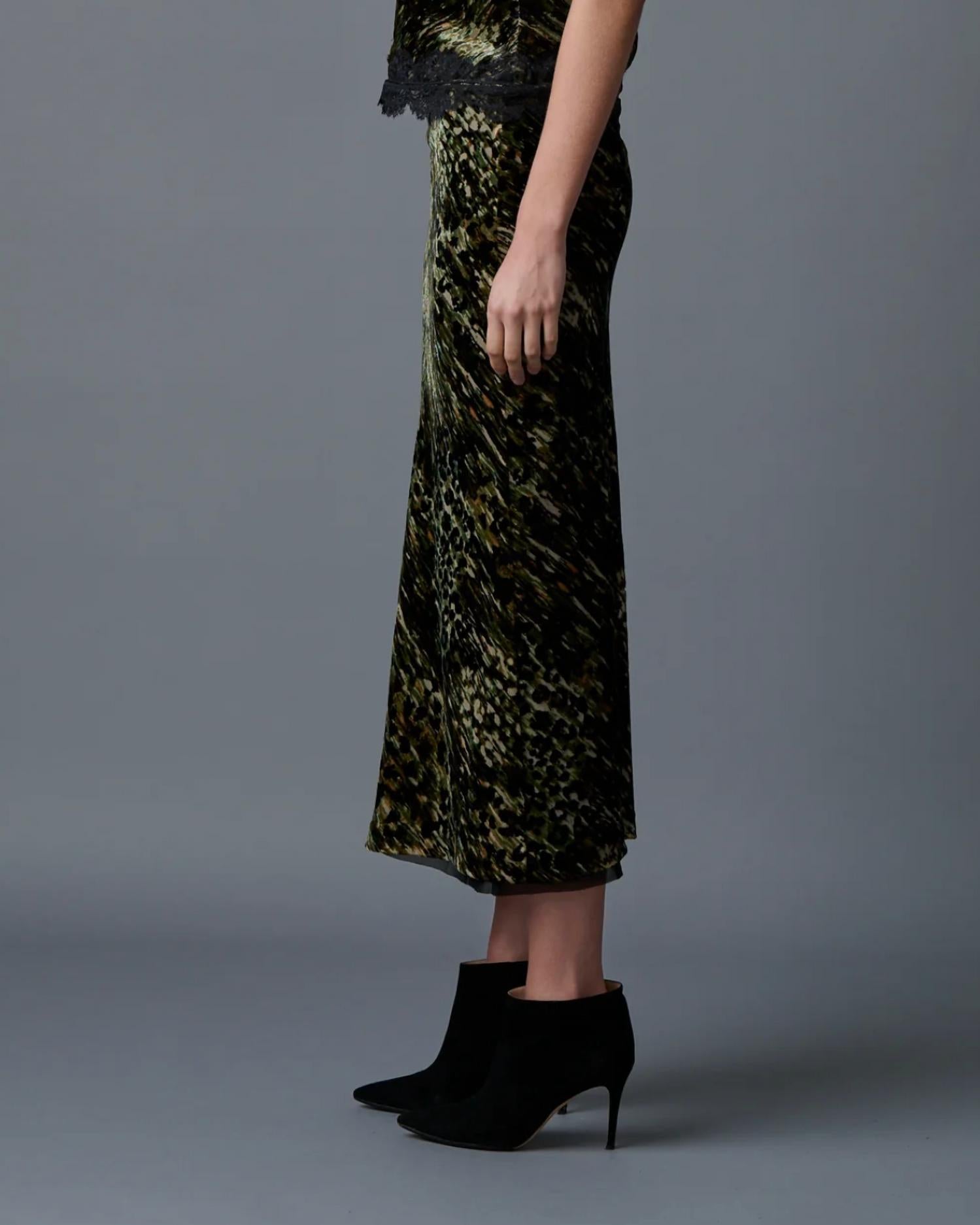 Elevate your wardrobe with the Velvet Underground Midi Skirt by LE SUPERBE, a chic and stylish piece crafted with 72% viscose and 28% nylon. Designed with an easy pull-on elastic waistband, this bias-cut skirt offers an elegant ankle-length silhouette adorned with a subtle abstract cheetah print. It is thoughtfully lined for a luxurious feel and draws inspiration from NYC's iconic rock band, The Velvet Underground. Perfect for a summer vacation, this animal pattern maximalist piece is designed without pockets for a sleek look.