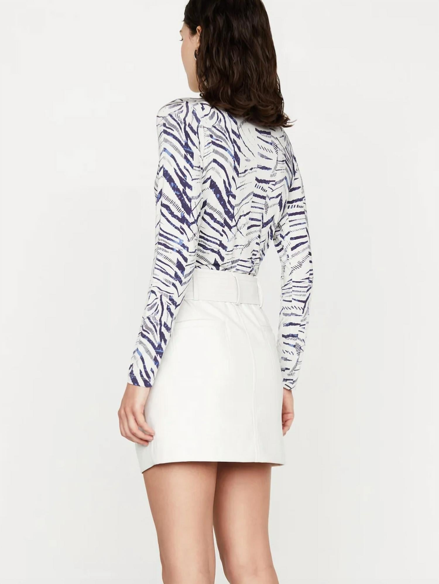 Tuck in your favorite tee for a more laid-back vibe. The Vallie Vegan Leather Mini Skirt by Marie Oliver is a chic addition to your wardrobe, crafted from 100% polyester for a modern edge. This stylish piece in soft white Cloud hits above the knee, enhanced with optional tie belt stitching detail and practical patch pockets. It features a convenient zip closure, offering both style and functionality. Pair it with anything from tee shirts to knits for versatile day-to-night ensembles.