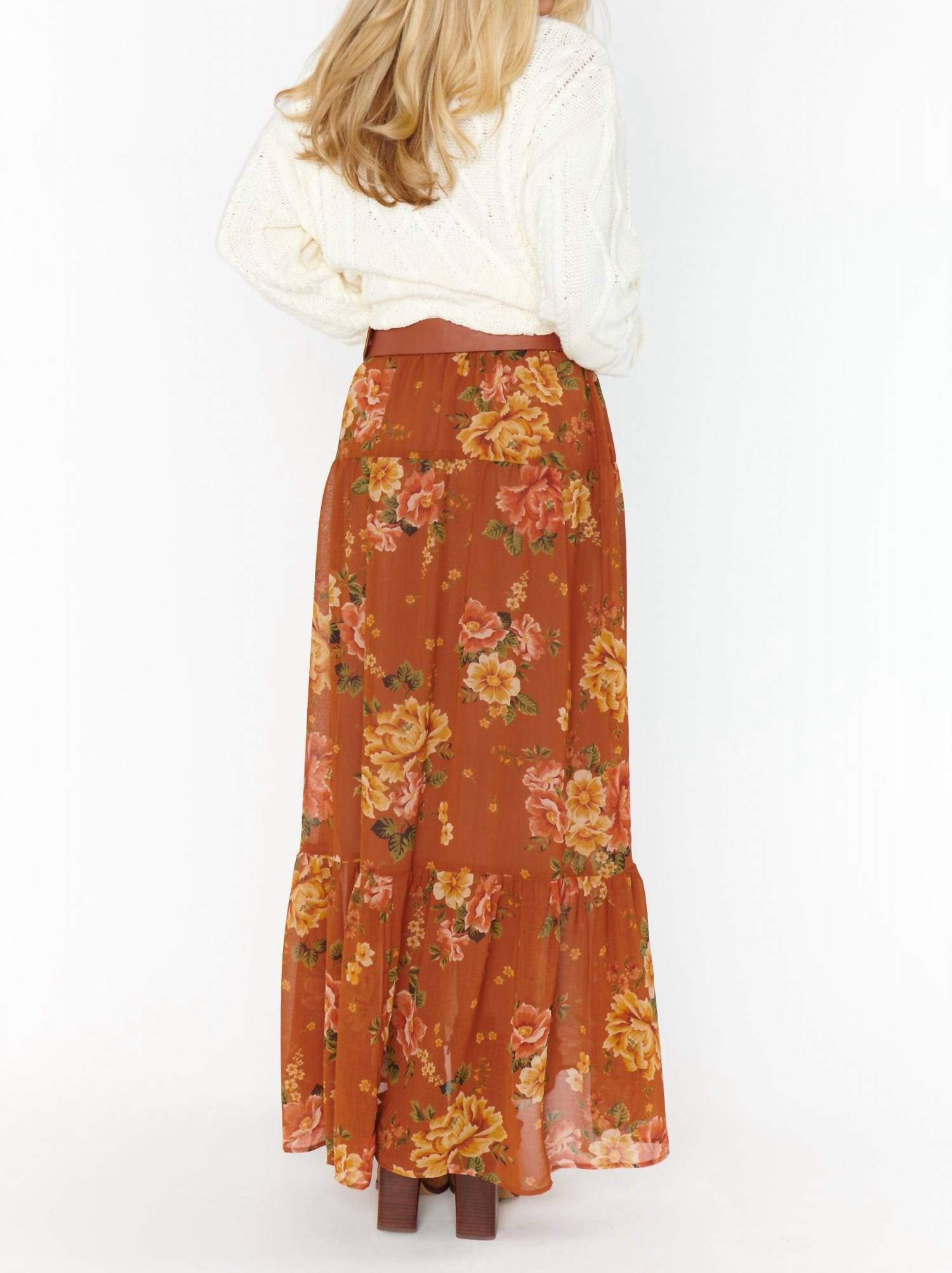 Show off just the right amount of skin in this beautifuly designed midi length skirt. Elevate your style with the Larina Midi Skirt by Show Me Your Mumu, crafted for comfort and versatility. This elegant skirt is made from premium polyester and showcases a charming floral pattern in the Garden Harvest colorway. Designed for the spring season and perfect for holiday parties, it features a convenient pull-on closure. Embrace the Boho Chic trend with this must-have addition to your wardrobe.