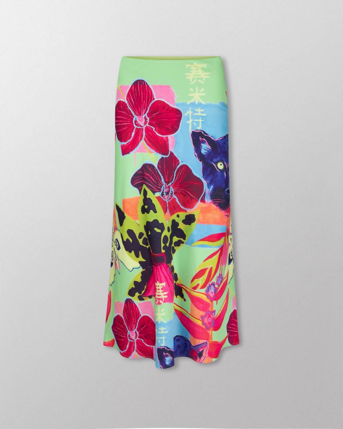 For a stylish blend of boho chic and contemporary design, the Wasabi Slip Skirt by Summi Summi is your go-to piece. This midi skirt in green features a vibrant floral and animal print, perfect for making a statement at any dinner party. Crafted from 97% polyester and 3% spandex, with an elastic waist and pull-on closure for effortless wear. Ideal for spring occasions like Easter, this garment adds a pop of color and style to your wardrobe.