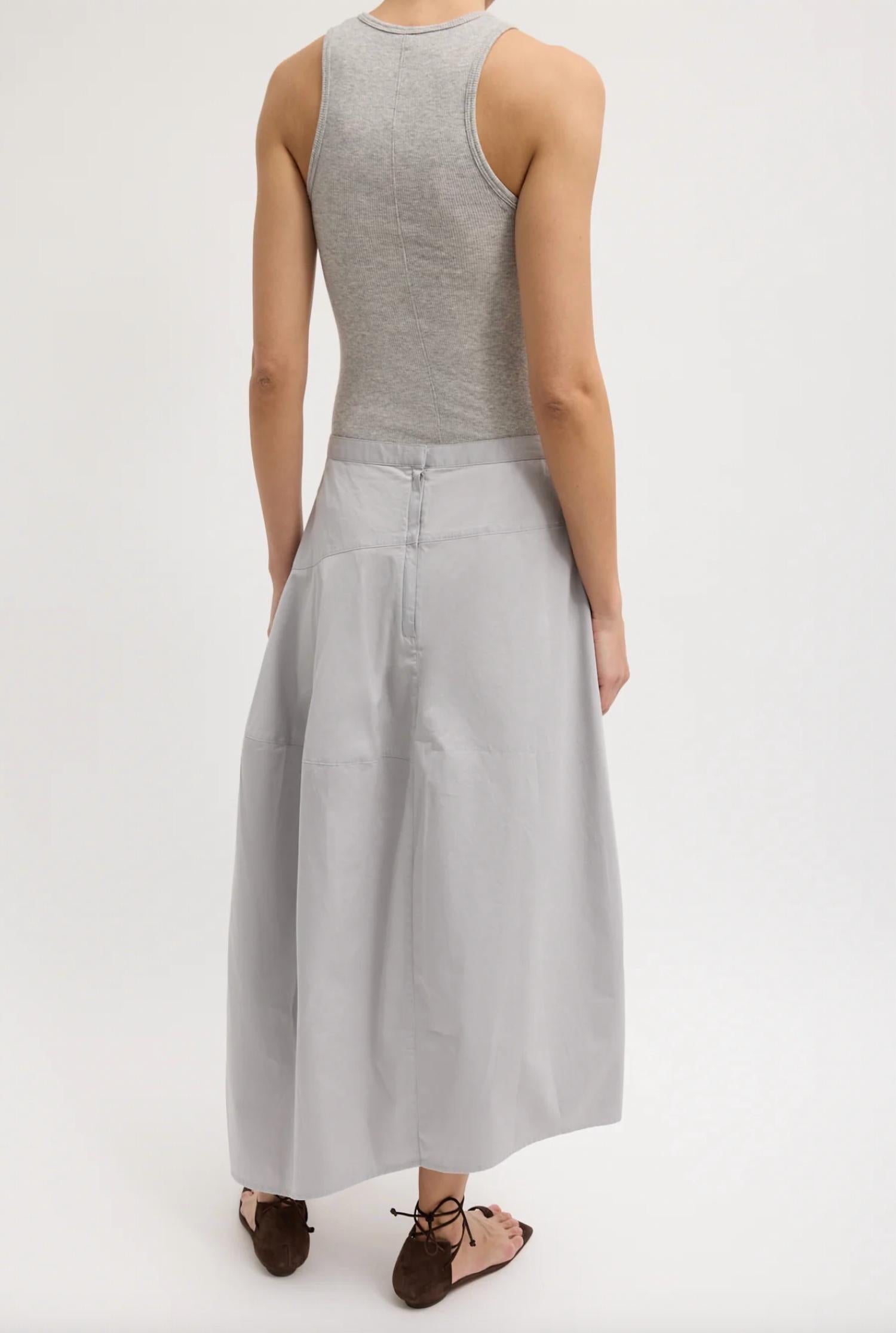 Introducing the Tibi Silky Asymmetrical Balloon Skirt, a summer staple in elegant grey, designed with a minimalist aesthetic. This asymmetrical skirt is crafted from a luxurious composition of 95% cotton and 5% elastane, ensuring comfort and style. It features practical side pockets and a zip closure for easy wearability. To maintain its shape and quality, we recommend hand washing.
