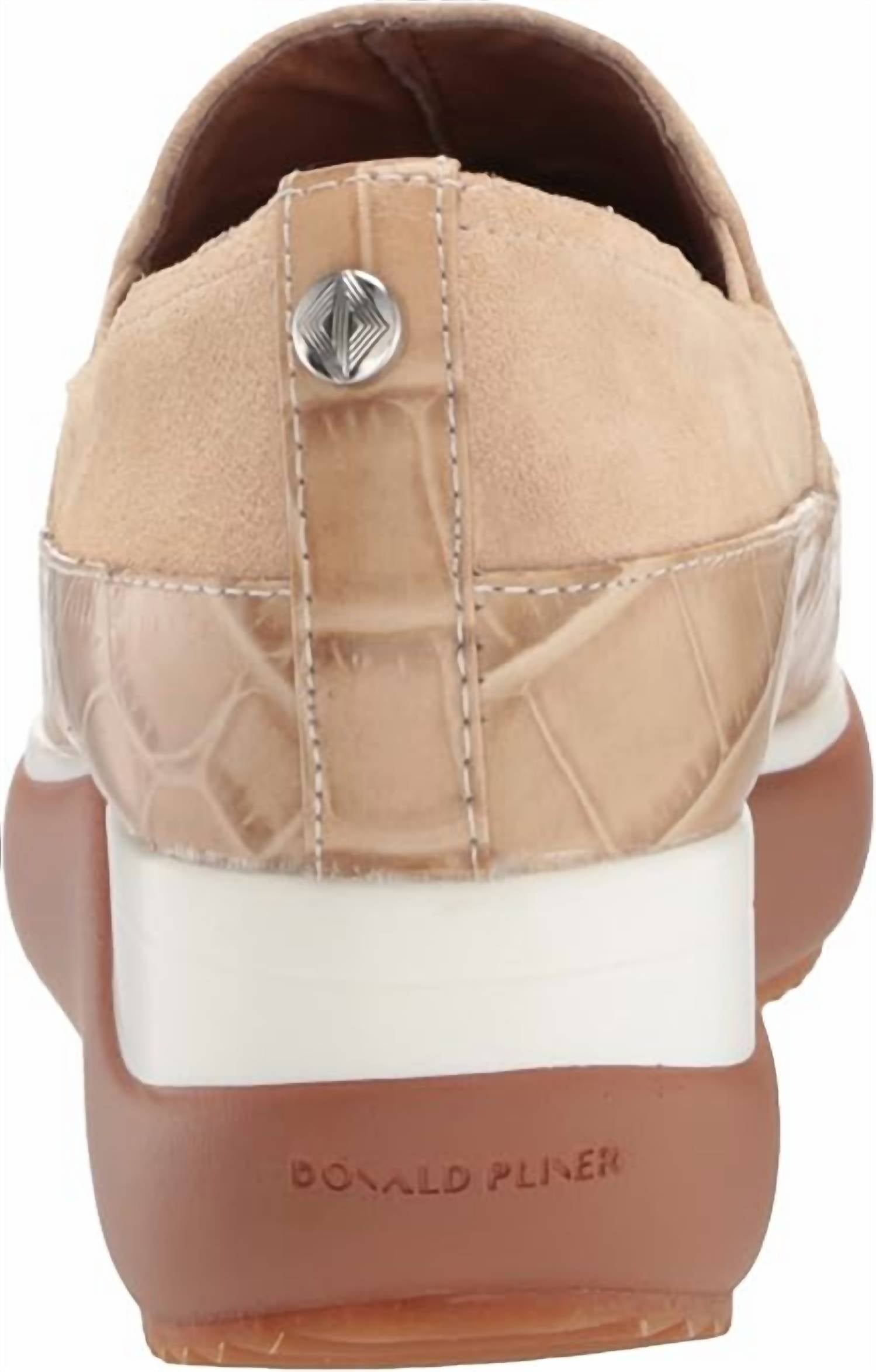 Bonitos, funcionais e confortáveis. Estes tênis atendem a todos os requisitos. Detalhe em couro crocco tonal em relevo, bico amendoado. Logotipo com tachas na parte de trás, reforços na gáspea. Forro em couro, palmilha acolchoada, solado plataforma de borracha. Salto 4,5 cm e plataforma 2,5 cm.