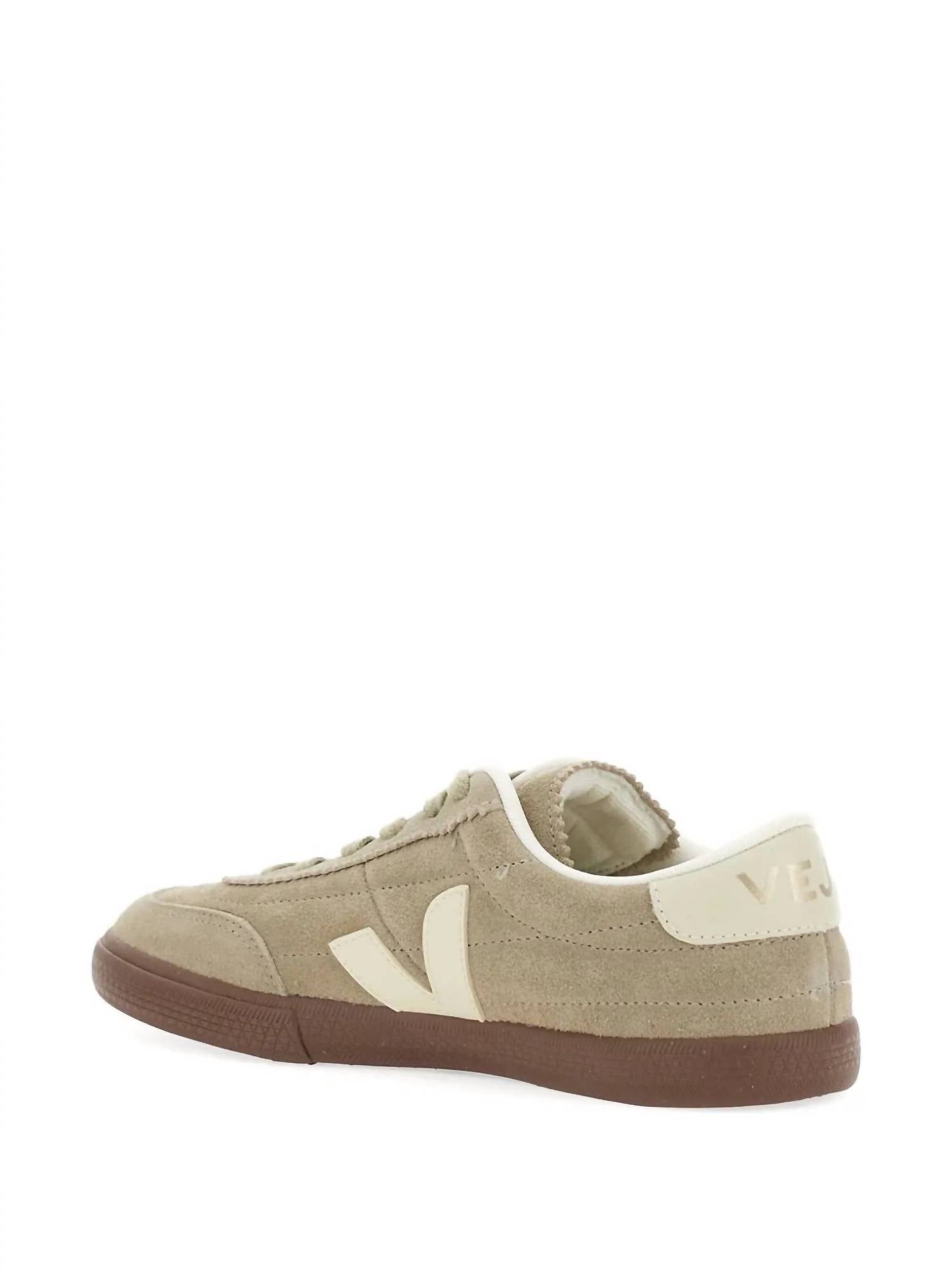 Get your daily steps in with these adorable sneakers. VEJA introduces the Women's Panenka Suede Sneaker, merging football heritage with urban style in a taupe pierre bark color. Designed for the spring season and perfect for a holiday party, these sneakers feature a luxurious suede upper paired with organic traced leather. The insole combines Amazonian rubber, bio-sourced E.V.A., and recycled materials for a comfortable fit, while the outsole is crafted with Amazonian rubber and recycled elements. Prioritizing eco-friendly practices, VEJA tanned the leather without harmful chemicals, ensuring a sustainable choice for the preppy trendsetter. Imported for quality and style.