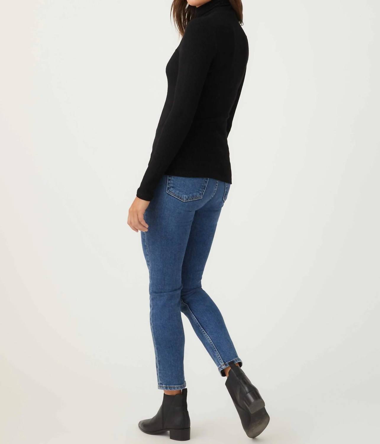 A classic staple that every closet needs. Meet the Long Sleeve Ribbed Turtleneck Sweater by Fifteen Twenty, a quintessential piece for any stylish wardrobe. Crafted from a 96% Viscose, 4% Spandex blend, this solid black turtleneck offers a comfortable yet polished fitted look. Made in the USA, it measures 25 1/8 inches in length for size S, and comes with a pull-on closure. Care for this quiet luxury staple with a simple hand wash and line dry.