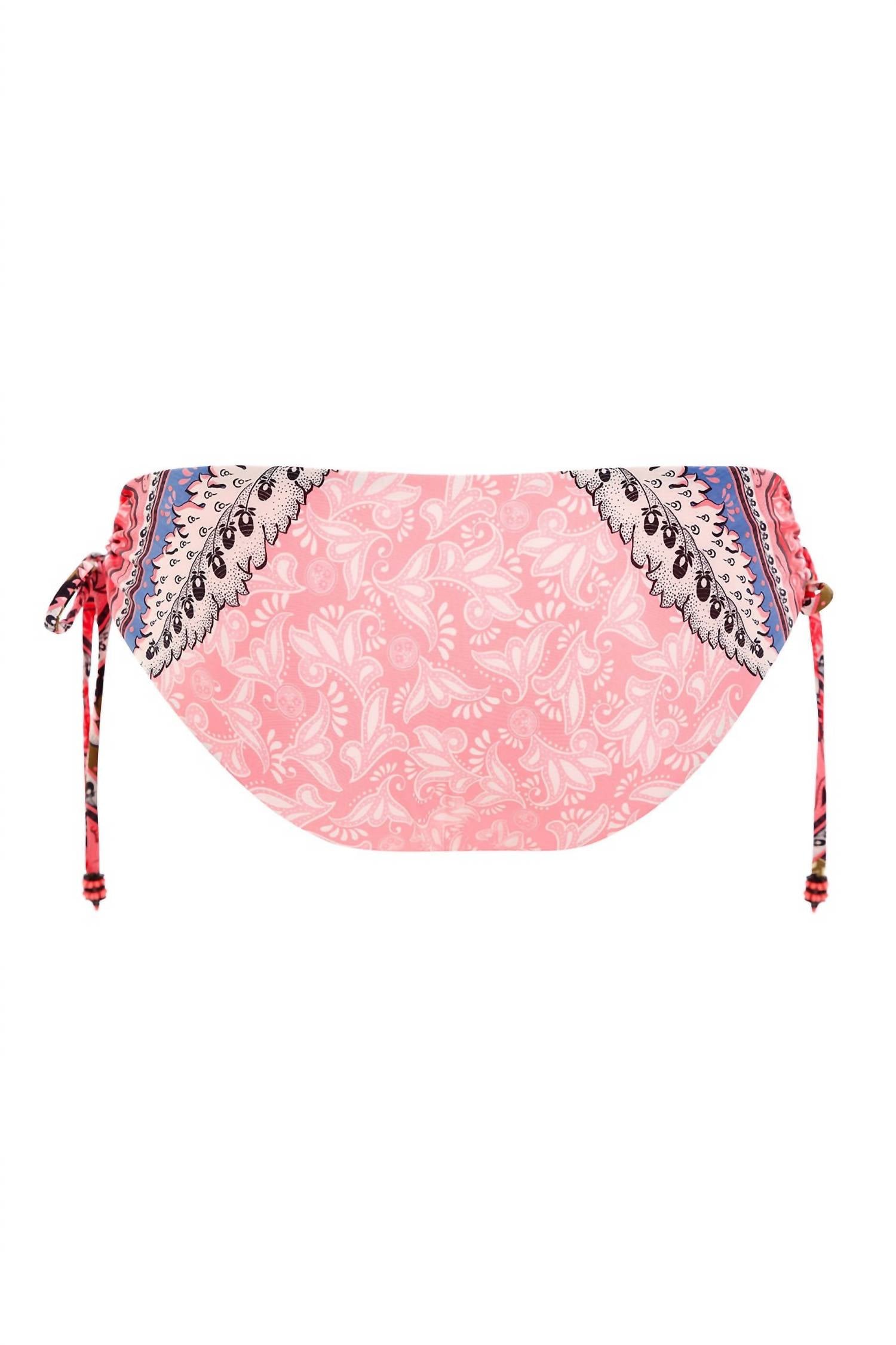 Ideal for relaxed poolside moments, this adorable swimsuit effortlessly transitions into the perfect sunset dinner outfit when paired with a flowing skirt. Discover the AGUA BENDITA Eda Embroidered Bikini Bottom, an exquisite blend of bohemian flair and sophistication in a captivating Antiq hue. This women's swim bottom features a cheeky coverage in a string bikini style with a mid-rise silhouette and adjustable side ties. Made from premium nylon, this piece offers a second-skin fit ideal for carefree beach days and summer adventures. Care instructions: Hand wash and line dry to maintain its unique embroidered and hand-beaded charm.