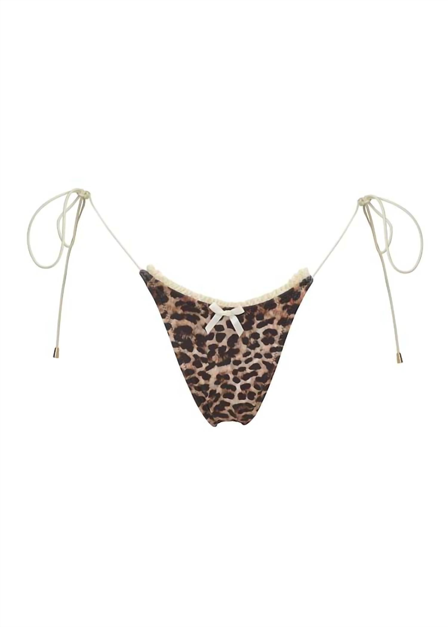 Discover the Flora Bikini Bottom by Bananhot, a chic piece in Leopard Dream perfect for beach days. This low-rise, tie-side swim bottom brings a playful vibe with its cheeky coverage and delicate white lace trim. Crafted from an 80% nylon and 20% elastane blend, it embraces the 90s fashion trend. For care, simply hand wash and tumble dry as needed. Ideal for summer celebrations, it’s a stylish nod to feminine charm.