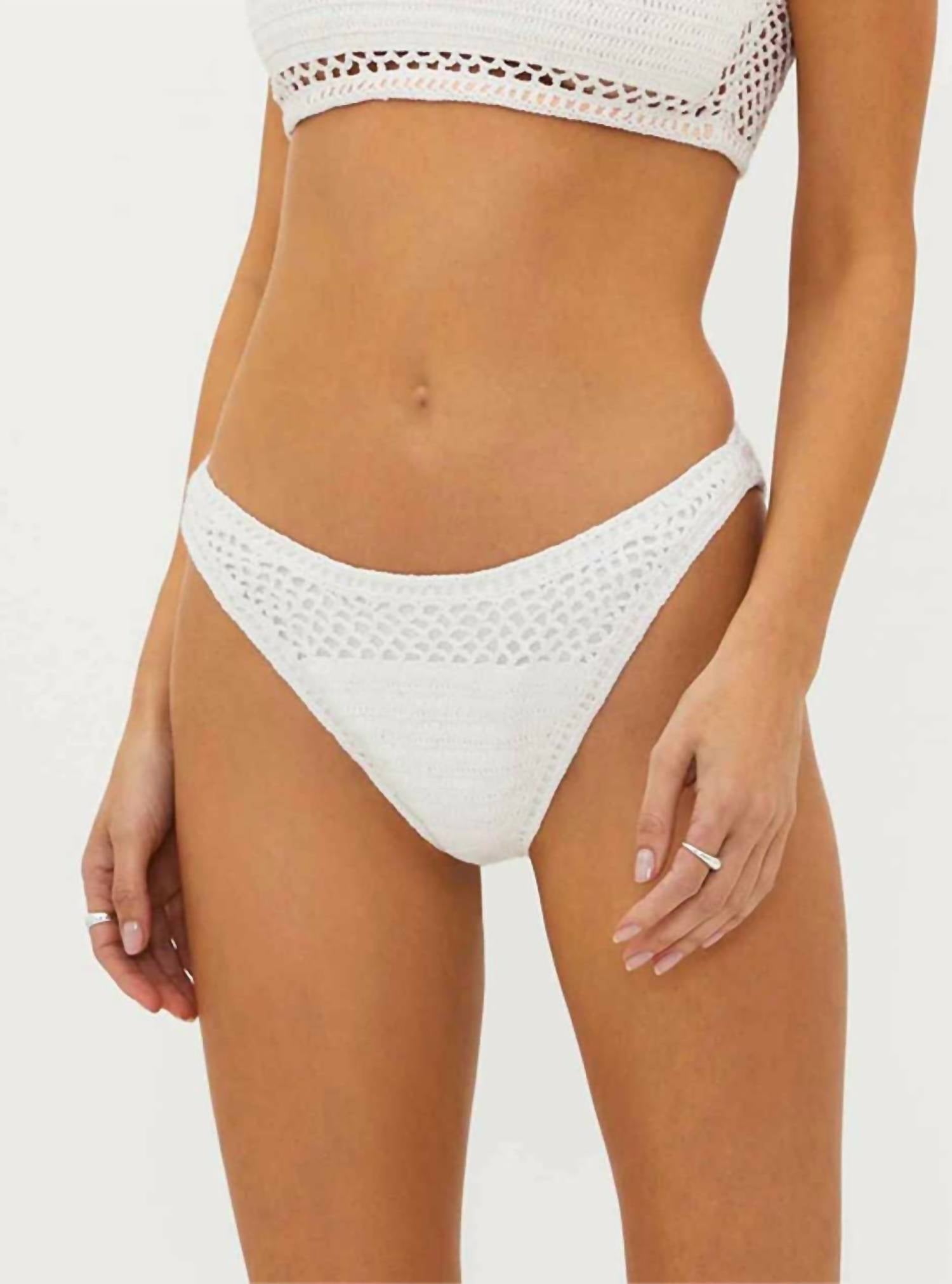 Sonhe com sua próxima escapada para a praia com esta peça fofa. Combine com sandálias de tiras, um chapéu flexível e uma bolsa grande para completar o look de férias perfeito. Descubra a Calcinha de Maiô Kaylin da Beach Riot, uma peça deslumbrante que combina uma silhueta minimalista com um estilo marcante. Com costas ousadas e corte alto nas pernas, esta calcinha de biquíni é confeccionada em uma mistura de 80% nylon e 20% elastano, garantindo conforto e flexibilidade. O tecido branco com estampa metálica iridescente adiciona um toque de luxo à sua coleção de trajes de banho. Disponível em tamanhos do XS ao XXL, com medidas de cintura e quadril para garantir um ajuste perfeito.