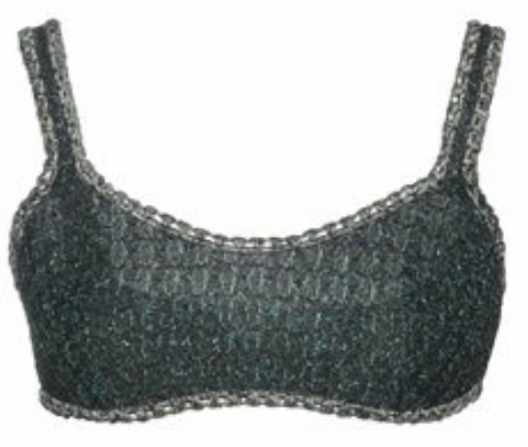 Enhance your beach style with this women’s bikini top, designed with a textured knit and a striking multicolor lamé pattern. The shimmering finish adds a touch of sophistication, while its sleek, seamless construction and absence of appliqués create a refined and contemporary look perfect for sunny days by the water.