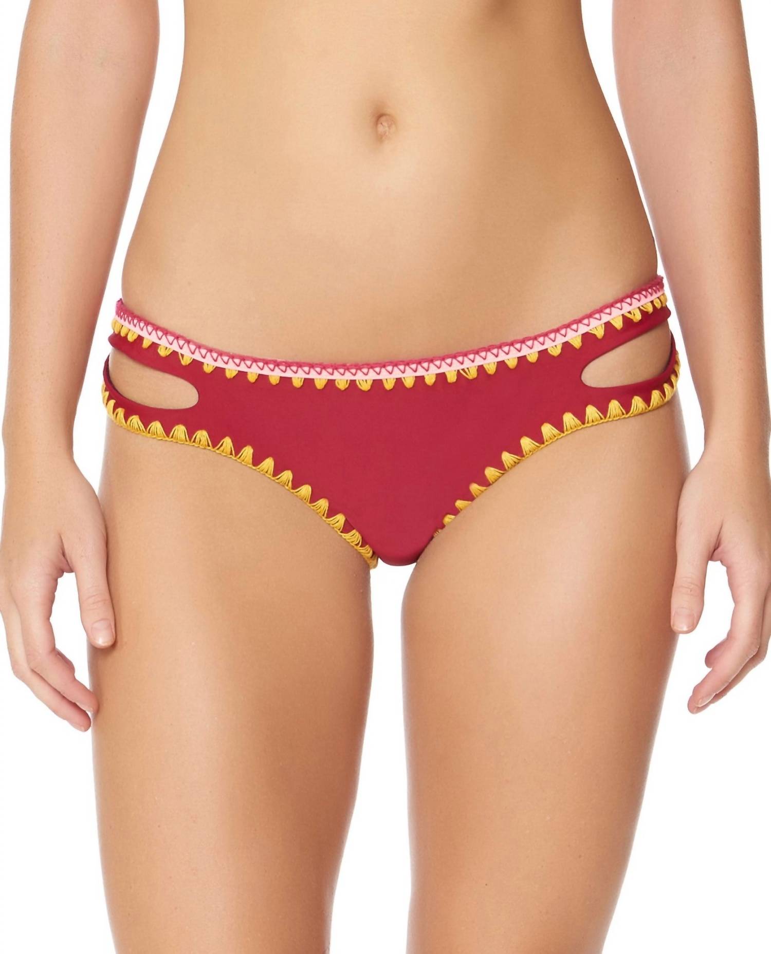 Sonhe com sua próxima escapada para a praia com esta peça fofa. Combine com sandálias de tiras, um chapéu flexível e uma bolsa grande para completar o look de férias perfeito. Apresentamos a Calcinha de Biquíni Reversível Hipster Jessica Simpson Woodstock nas encantadoras cores Merlot e Spice. Desfrute de um estilo versátil com seu design reversível e acabamento em pespontos contrastantes, enquanto o caimento baixo garante conforto e estilo. Esta deslumbrante calcinha de biquíni é feita de uma mistura de 82% nylon e 18% elastano, oferecendo cobertura total e um detalhe exclusivo de fenda lateral. Perfeito para mulheres que amam conforto e elegância em trajes de banho.
