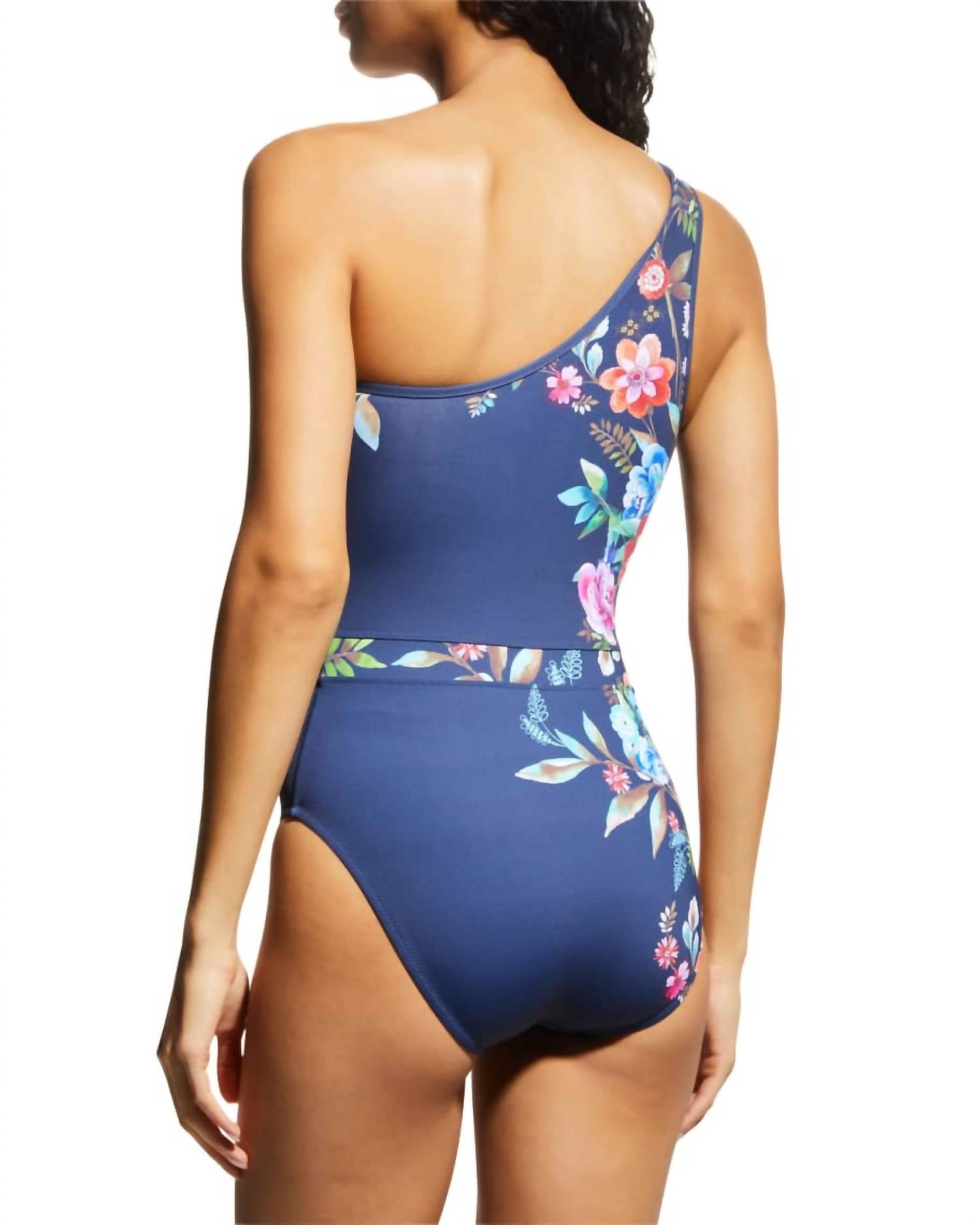 Esta peça veste como uma luva e cobre todas as áreas. Estampa floral. Decote de um ombro só. Alça fixa. Bojos macios removíveis. Cintura com cinto. Cobertura moderada do assento. Poliamida/elastano. Lavar à mão.