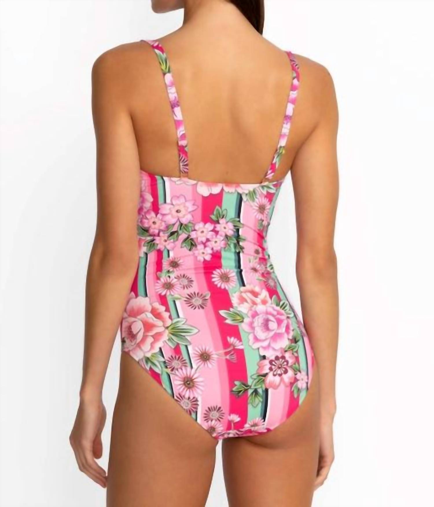 Impecável e feminino, o Maiô Bocardi com Babados é adornado com florais ricos e listras ousadas. Com decote quadrado e alças ajustáveis, este maiô vibrante é finalizado com painéis contrastantes nas laterais e um painel central franzido para uma silhueta valorizada.