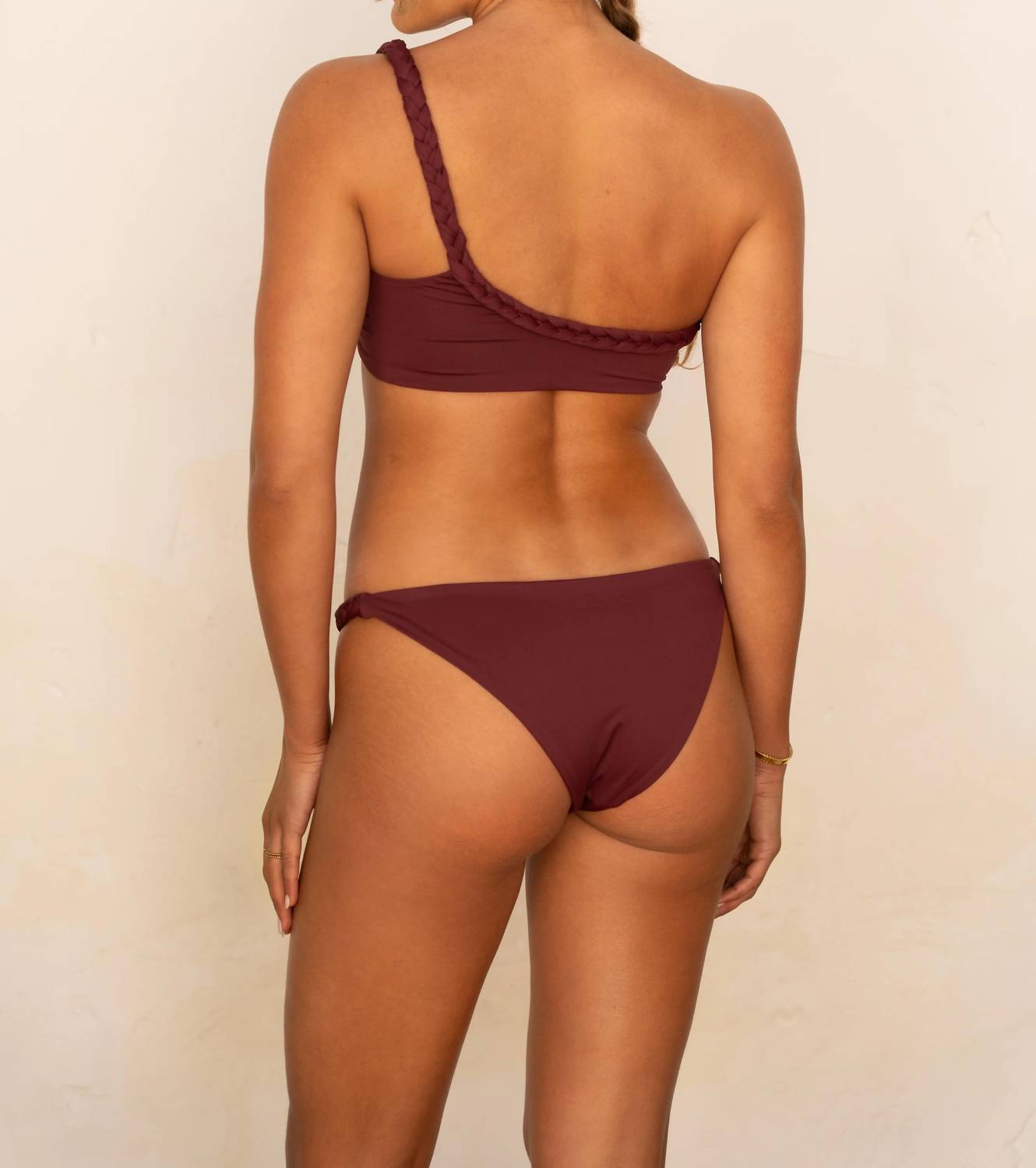 This cute and flattering swimsuit is perfect for making a splash at the pool, lounging on sun-kissed beaches, and staying stylish throughout the upcoming summer season. Elevate your beachwear with the Lisa Top by Khaven, a chic aubergine bikini featuring an asymmetrical bandeau shape. This swim top is crafted from a nylon blend, offering a solid pattern that complements its one-shoulder design with a signature braided strap. Perfect for small to medium sizes, the double-lined fabric ensures comfort, opacity, and durability. Care for this versatile piece with machine wash and tumble dry instructions, making it ideal for summer beach days.