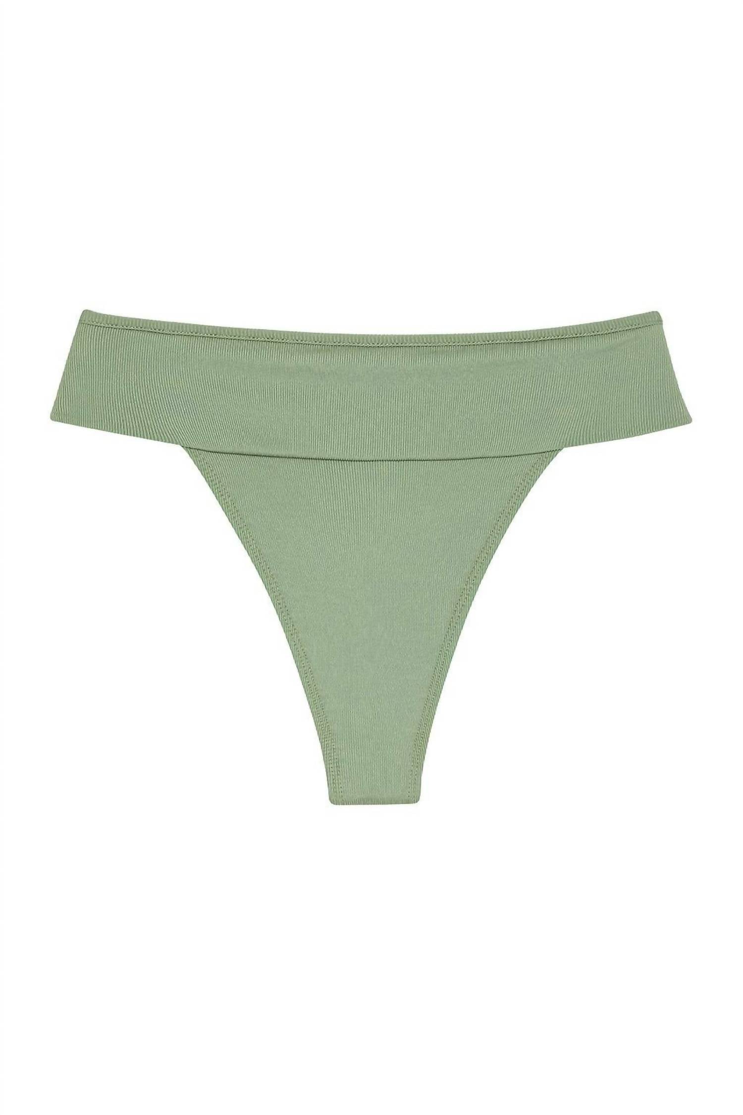 Elevate your beach look with the Tamarindo Binded Bikini Bottom by Montce in an elegant Sage Green Rib. This swim bottom offers moderate back coverage with a medium rise and high-leg French cut, perfectly designed to create an elongated leg line and accentuate the booty with its ruched back. Crafted from 90% recycled nylon and 10% spandex for a sustainable edge, it features a luxurious silky fabric with an understated sheen. Care instructions recommend hand washing to maintain its minimalist charm for those perfect beach days.