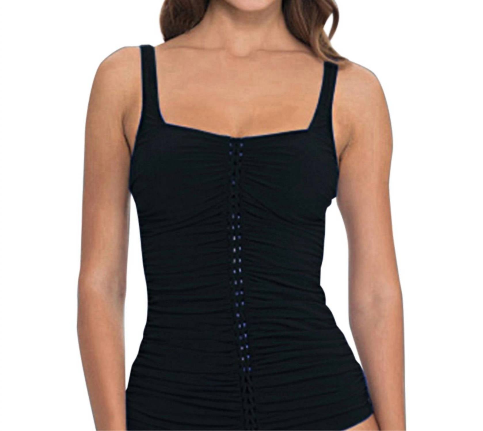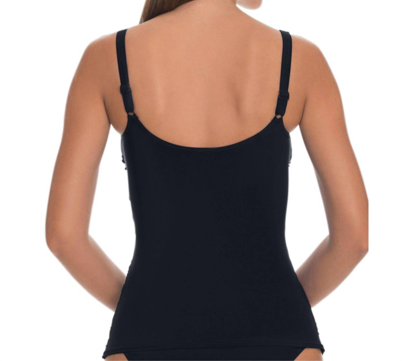 Sonhe com sua próxima escapada para a praia com esta peça fofa. Combine com sandálias de tiras, um chapéu flexível e uma bolsa grande para completar o look de férias perfeito. Este top tankini apresenta bojo macio. Decote redondo. Tronco visualmente esbelto com corpete franzido. Alças ajustáveis ​​deslizantes. Poliamida, elastano.