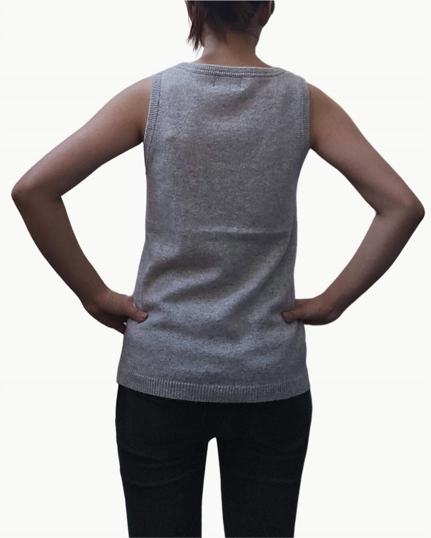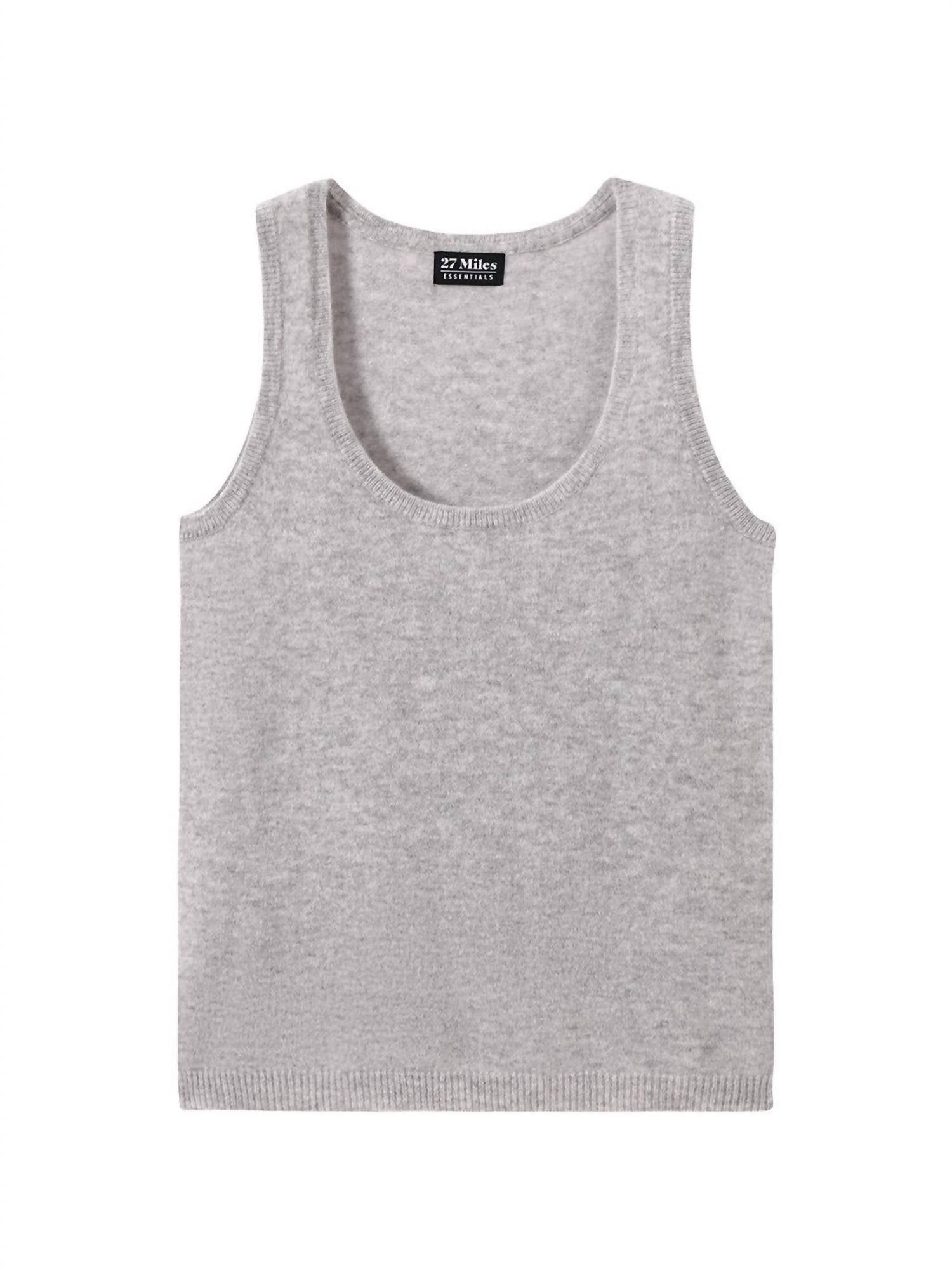 The perfect tank top for those warmer weather seasons. Indulge in the luxurious comfort of the 27 Miles Malibu Violette Cashmere Tank, a sleeveless masterpiece made from 100% cashmere. This heather grey tank top is designed with a scoop neckline and textured ribbed detailing, offering a timeless and elegant look. Closure: Pull-on style. Perfect for layering or wearing alone, this versatile piece is ideal for a minimalist summer style.