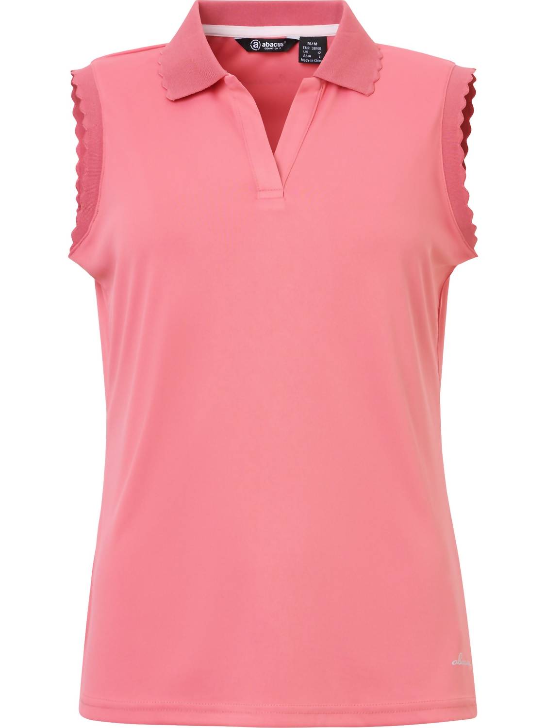 Discover the Victoria Drycool Sleeveless Polo by Abacus Sportswear US, a blend of style and functionality in vibrant lipstick pink. Crafted from soft, stretchy recycled polyester, this tank top is designed with wavy edges on the shoulders and collar, offering a feminine touch. Its V-neckline enhances the flattering fit, while Drycool technology ensures breathability, making it perfect for the golf course or layered under a blazer. Closure: Pull on. Care: Machine wash and line dry.