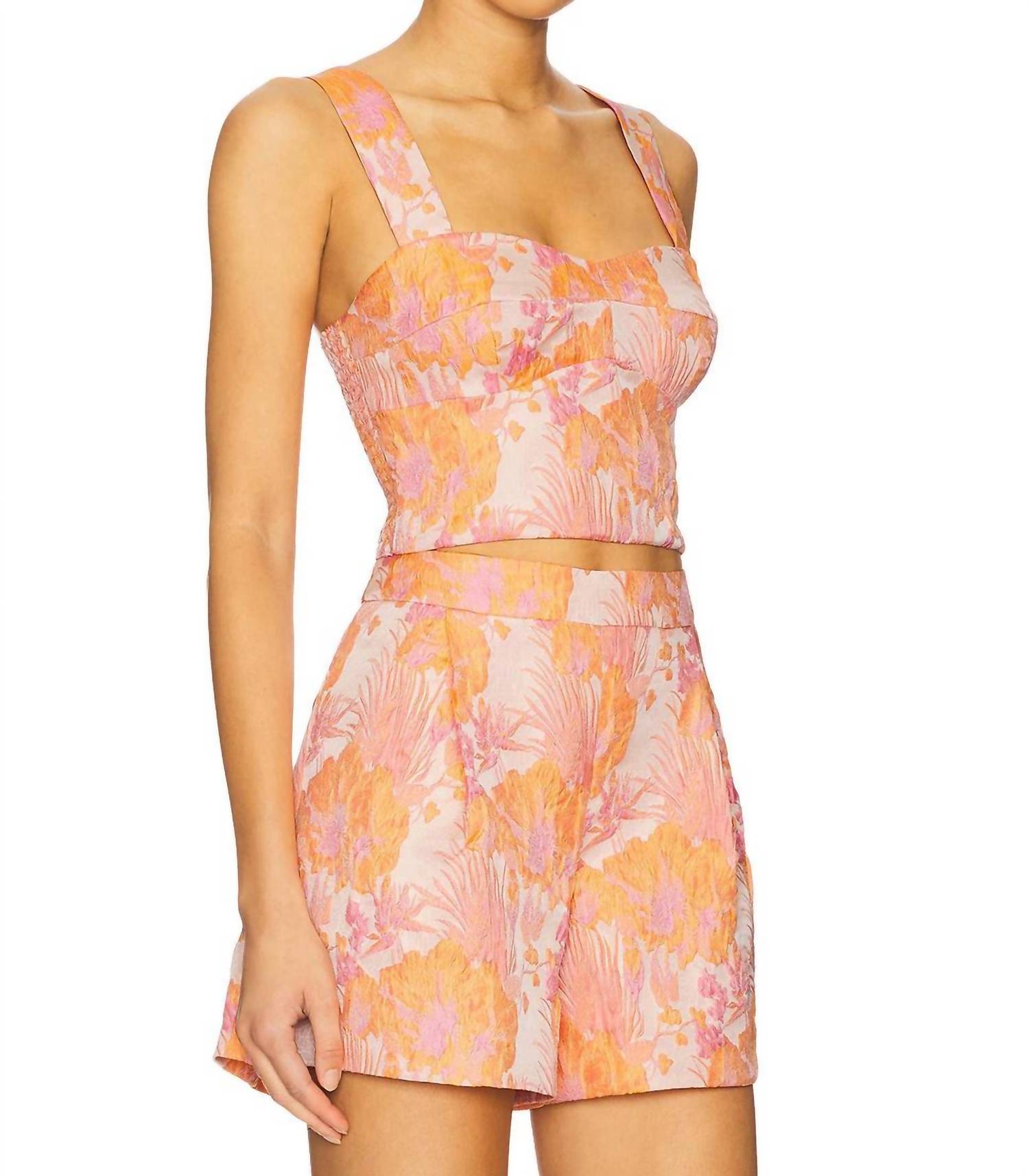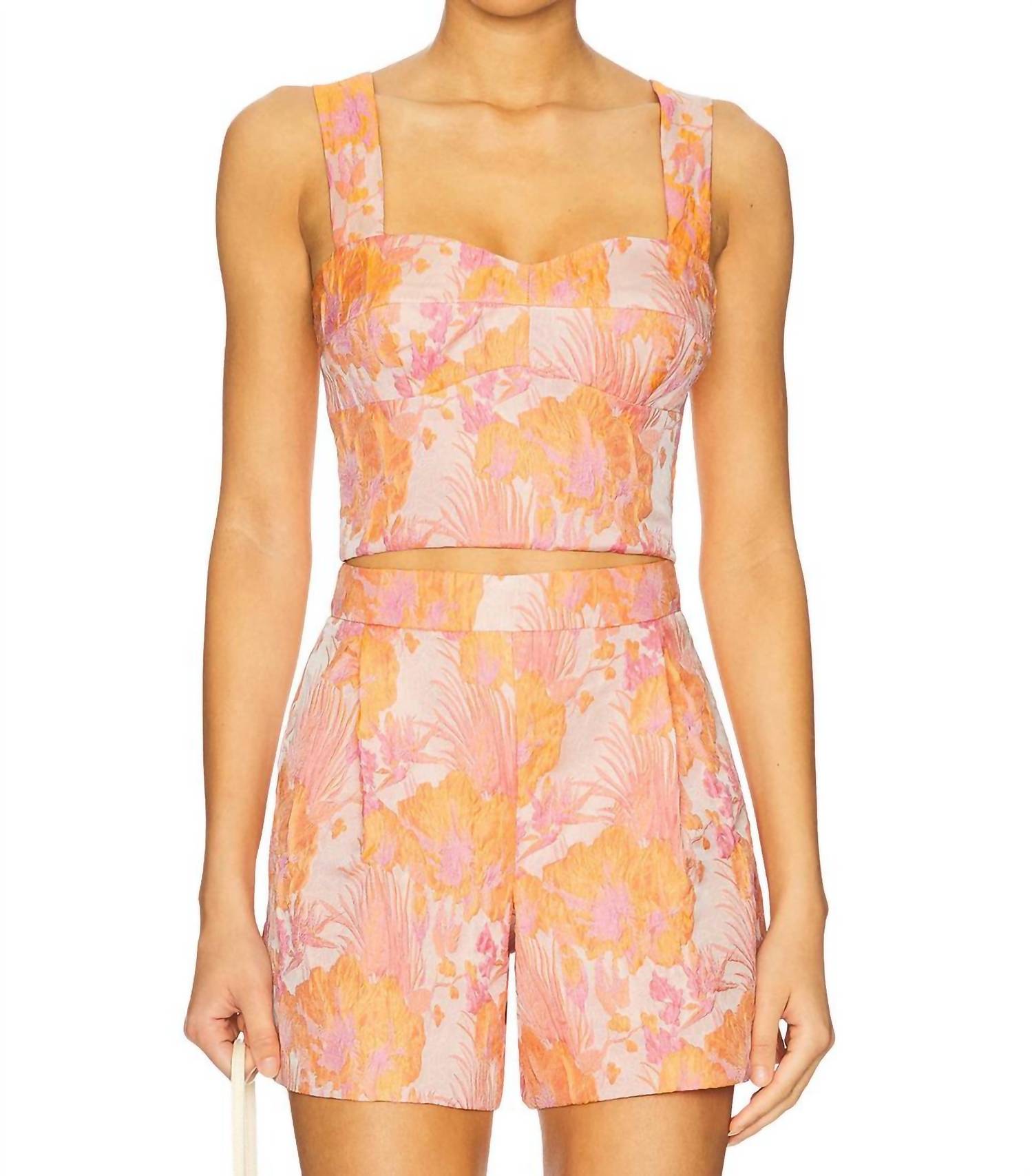 Step into summer with the vibrant Kenley Top by Amanda Uprichard, a sleeveless bandeau perfect for a playful yet chic look. Crafted from a blend of 95% Polyester and 5% Elastane, this cropped top showcases a stunning floral pattern with a flattering sweetheart neckline. Closure: Back zip closure. Care: Dry clean only. Ideal for a holiday party or any fun summer occasion.