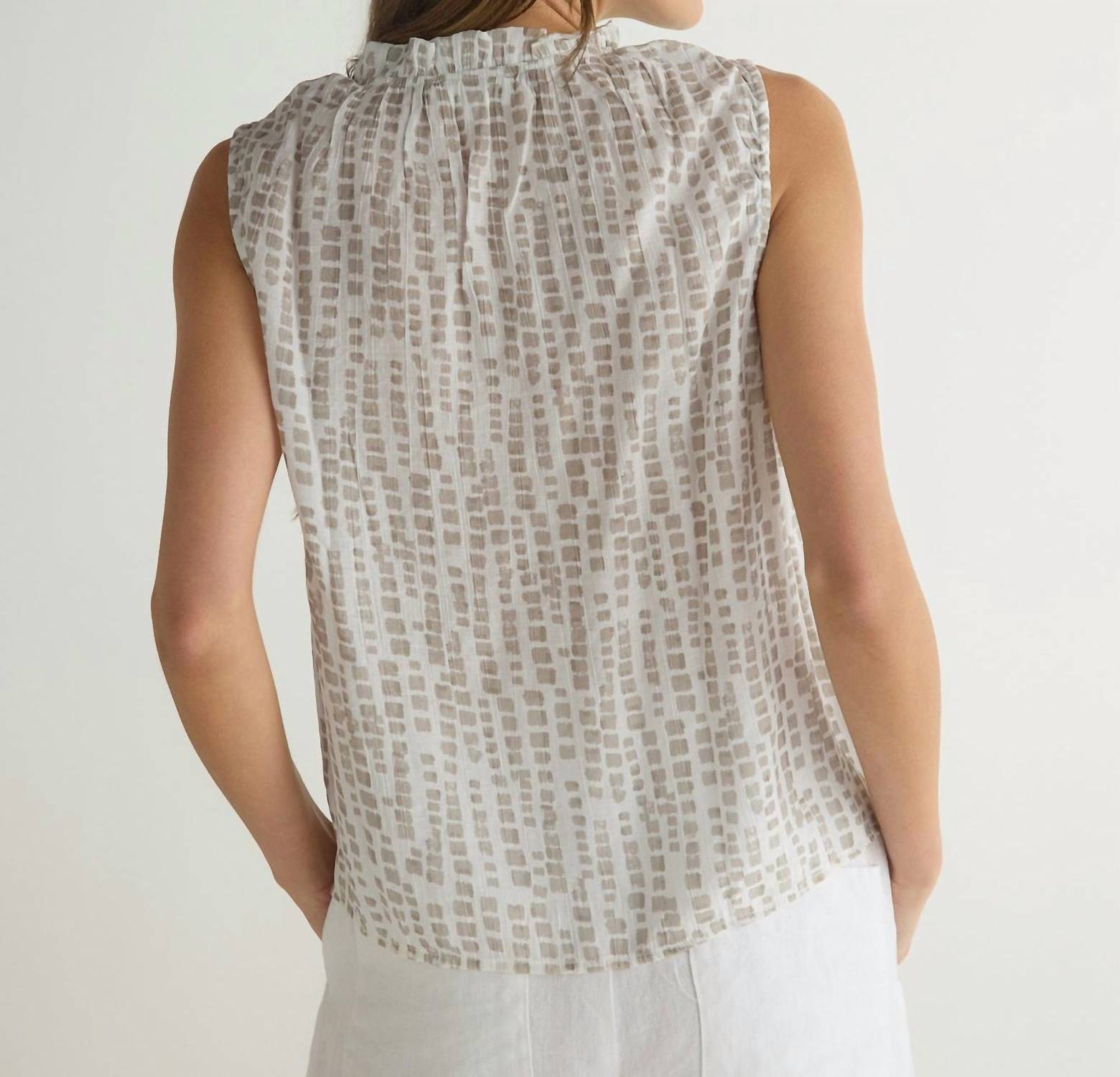 A regata perfeita para as estações mais quentes. Descubra a regata Bella Dahl com gola babada, perfeita para aventuras ensolaradas e noites quentes. Esta regata sem mangas, fabricada nos EUA, é confeccionada em um tecido macio, semitransparente, com estampa de blocos abstratos e uma estampa geométrica tonal. Composta por 80% rayon e 20% nylon, apresenta uma silhueta relaxada com um decote sutilmente franzido. Projetada com lavagem à máquina, mede 56 cm no tamanho P.