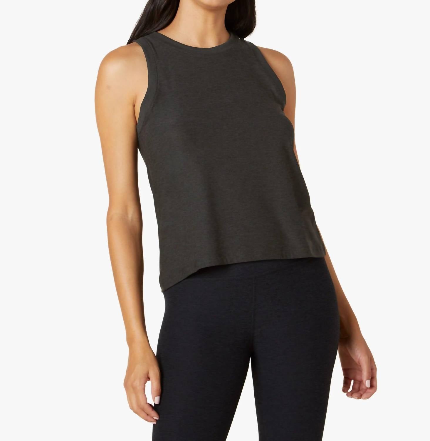 A regata perfeita para as estações mais quentes. Decote alto na frente. Gola e cavas caneladas. Caimento relaxado. Comprimento alto no quadril. Criado exclusivamente para valorizar todos os tipos de corpo. Fabricado nos EUA.