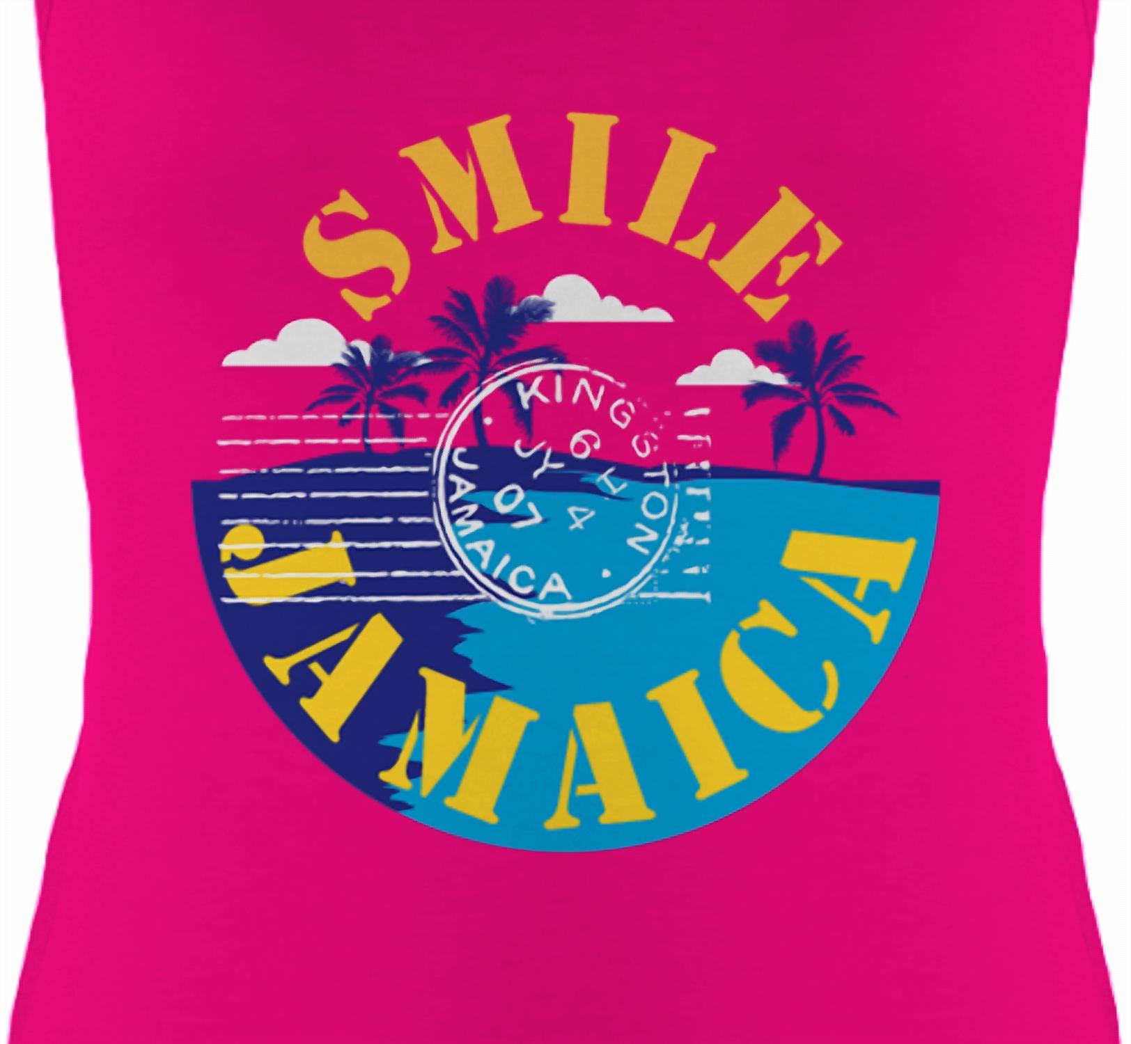 Embrace your roots with the Women's Smile Jamaica Juniors Tank Top by Bob Marley, a tribute to timeless style. Crafted from 100% soft cotton, this graphic pink tank top brings a summer-ready vibe with its beach-themed design. Featuring a scoop neckline, sleeveless silhouette, and easy pull-on closure, it’s perfect for vacation getaways and streetwear. Make a statement this Thanksgiving with this iconic piece.