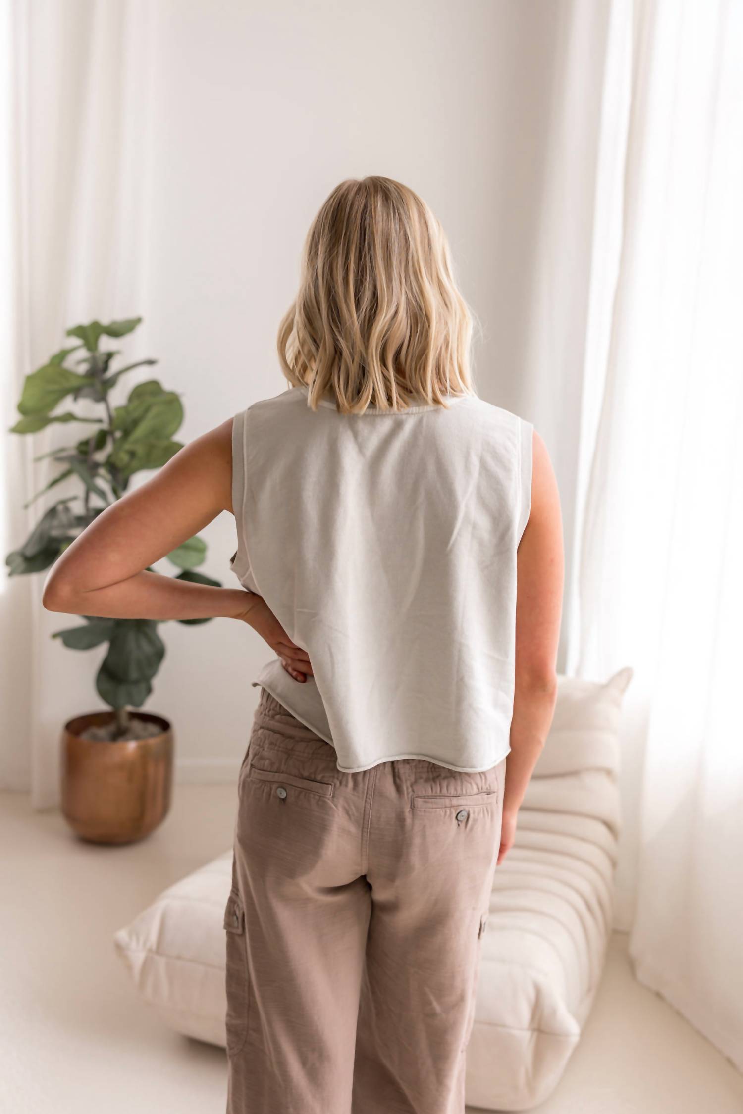 This classic tank top is perfect for layering and cute enough to wear on its own. Introducing the Rocky Knit Tank by By Together, a sleeveless essential designed for effortless summer style in a solid beige hue. Crafted with a crewneck and a pull-on closure, this minimalist piece is perfect for vacation vibes, whether layered or worn solo. Perfect for adding comfort and casual charm to any wardrobe. Model is wearing a size small (5’6” height, 35.5” chest, 27” waist, 36.5” hip, 29” inseam).