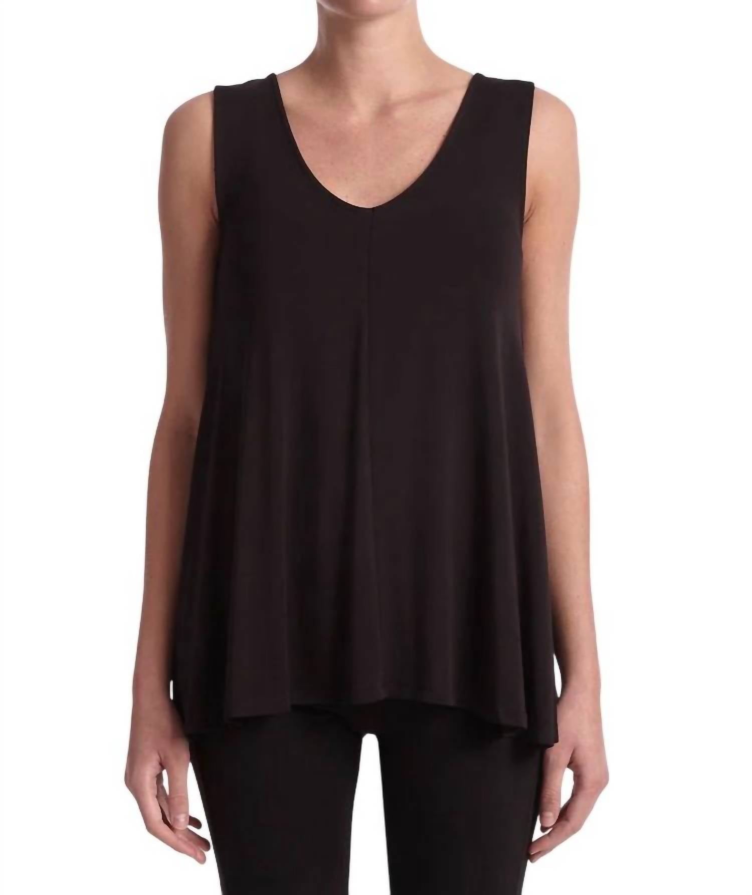 Regata de malha. A modelo tem 1,78 m e veste tamanho P. 93% bambu, 7% elastano. Lavar à máquina com água fria, não usar alvejante, secar na horizontal, passar a ferro frio, se necessário, ou lavar a seco. Importado.