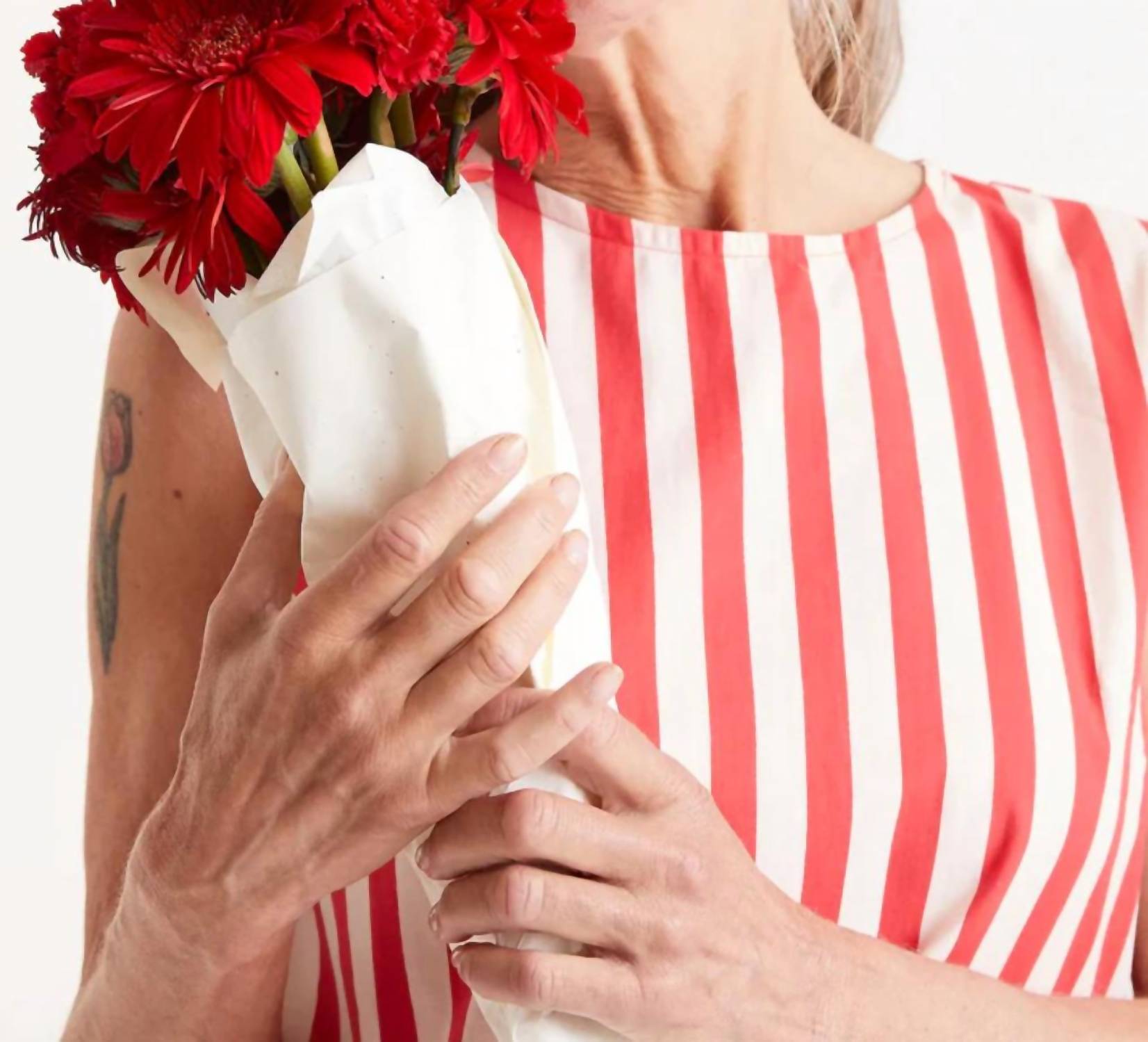 A Regata Cabana da Compania Fantastica oferece um estilo descontraído para o verão com seu design sem mangas, confeccionada em algodão confortável com uma estampa divertida de listras vermelhas. A blusa possui gola redonda e fecho nas costas com fenda e botão para um toque elegante. Material: Algodão. Fecho: Botão. Perfeito para adicionar elegância casual a qualquer look para dias ensolarados.