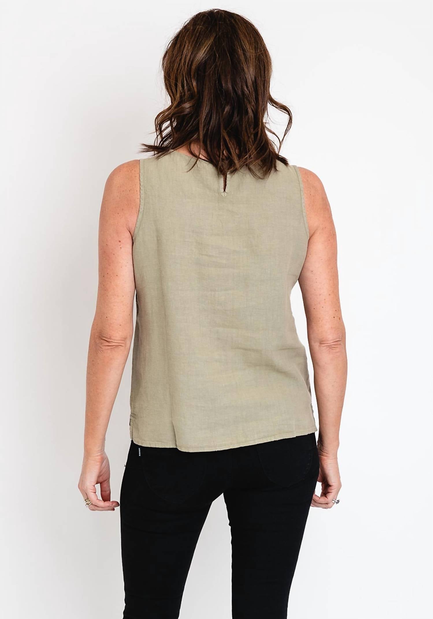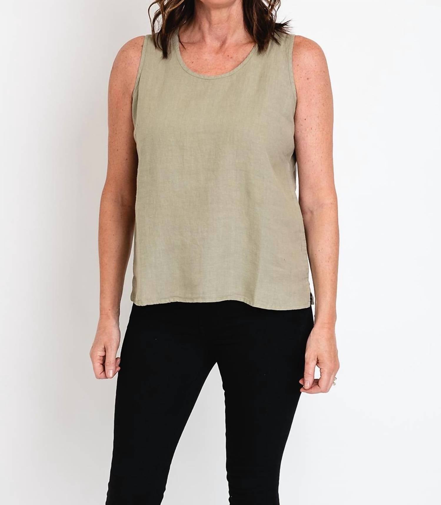 Elevate your wardrobe with the Linen Tank Top by DOLCEZZA, a must-have for minimalist style. This chic khaki top is sleeveless and crafted from 100% linen, offering breathable comfort perfect for spring and vacation. It features a flattering scoop neckline and a simple pull-on closure for easy wear. Care for it effortlessly with machine wash instructions, ideal for women who appreciate style and simplicity.