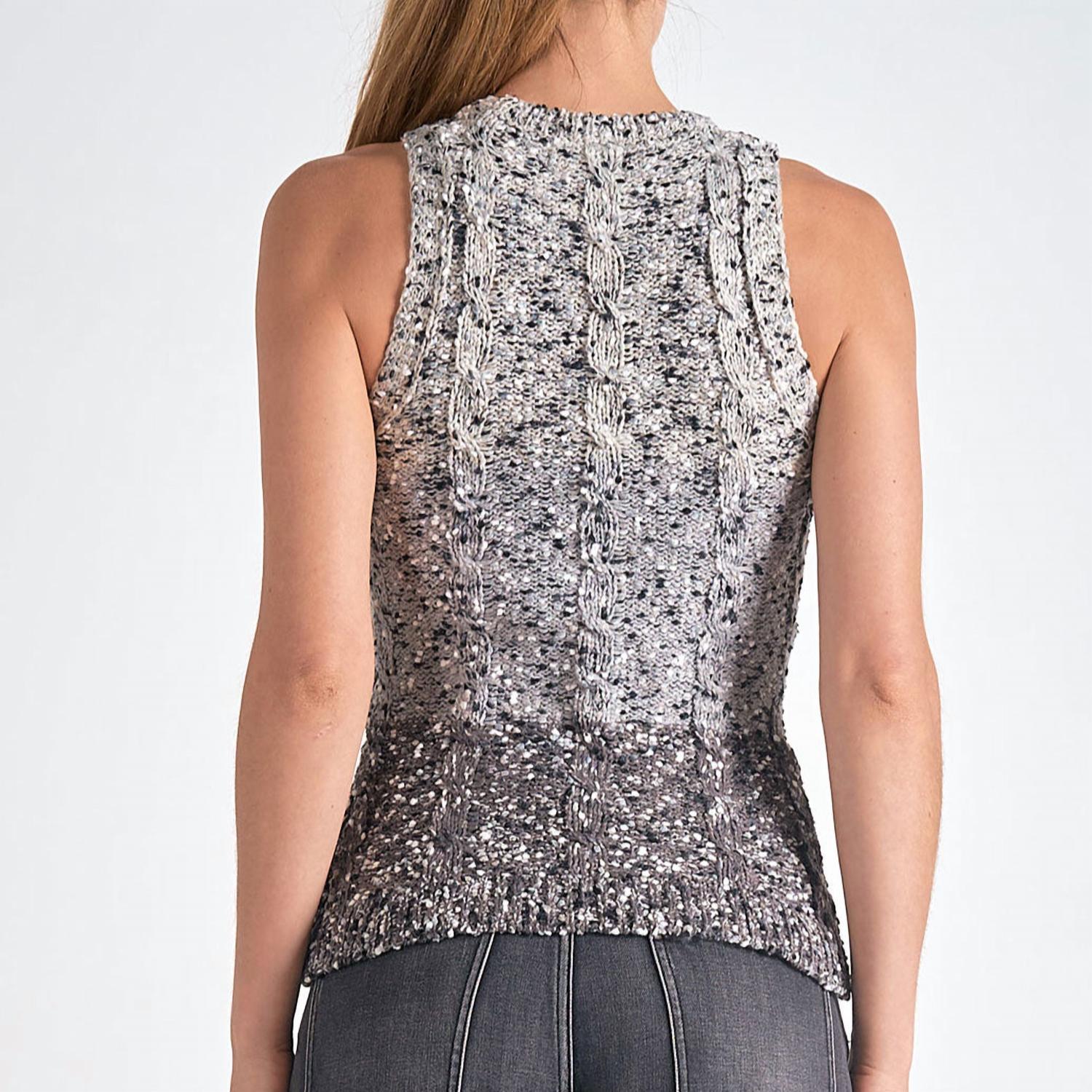 Fit, fabric and functionality. This tank top checks all the boxes. Experience the sleek design of the Sleeveless High Neck Sweater Top by ELAN, a must-have for any minimalist wardrobe. This knit tank top presents a textured pattern with vertical cable details, complemented by a sophisticated mockneck. Material: Knit. Closure: Pull on. Care: Hand wash for lasting quality. Available in a versatile gray hue, perfect for a stylish dinner party ensemble. Sizes: S, M, L.
