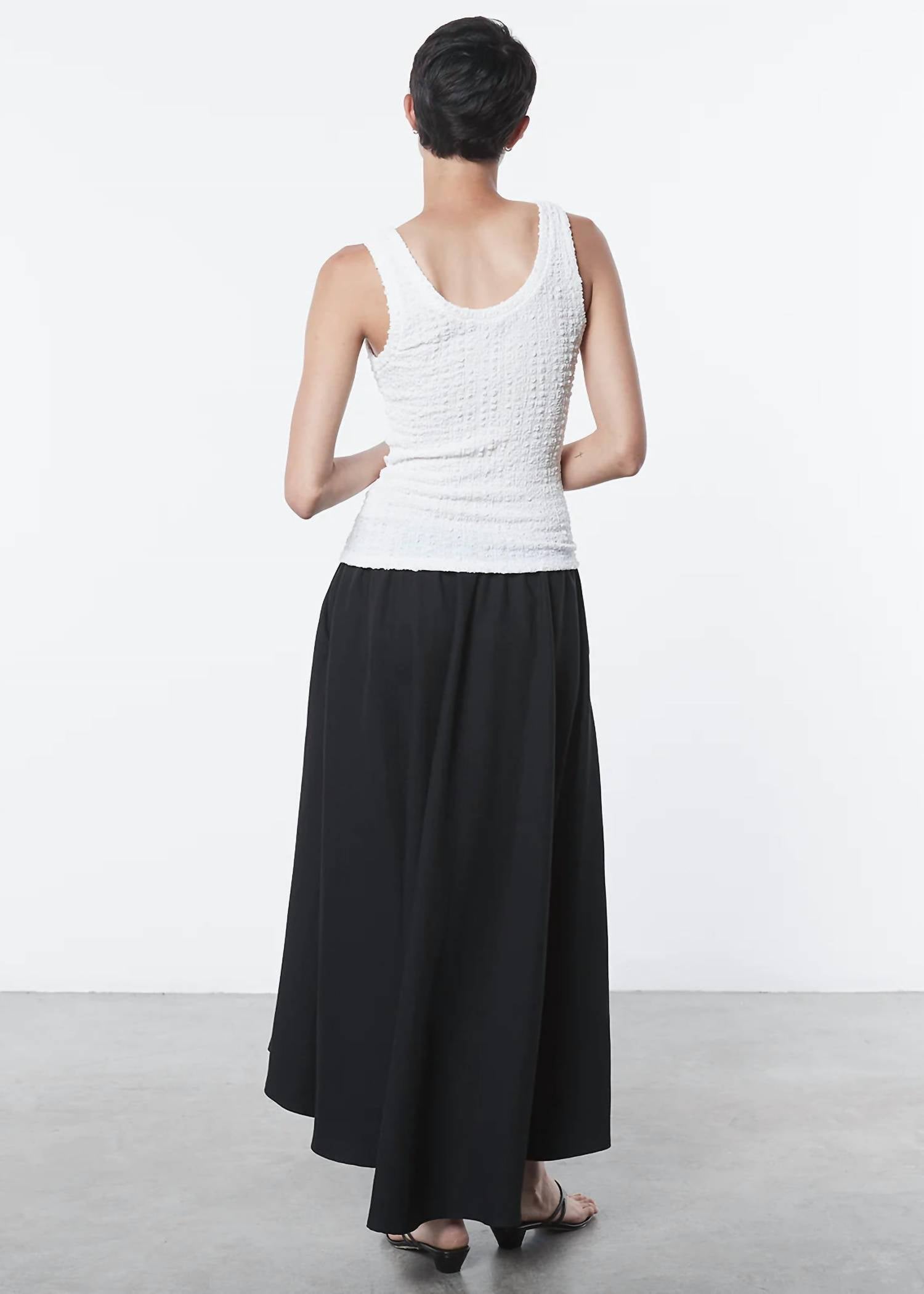 Esta regata clássica é perfeita para usar em camadas e é fofa o suficiente para ser usada sozinha. Confeccionada com uma textura única e delicadamente expansível, a Regata Franzida apresenta um caimento leve e fácil de usar, com decote redondo. 81% Viscose, 16% Poliéster, 3% Elastano. Fabricada nos EUA.