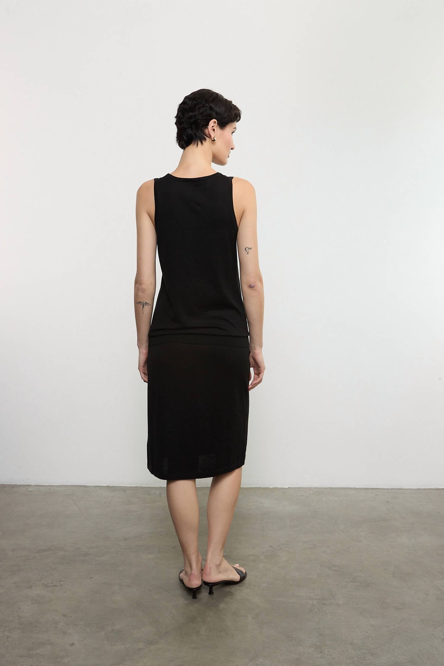 This classic tank top is perfect for layering and cute enough to wear on its own. A fluid silk-cotton knit tank with a relaxed fit, classic U neckline and wide ribbed hem.