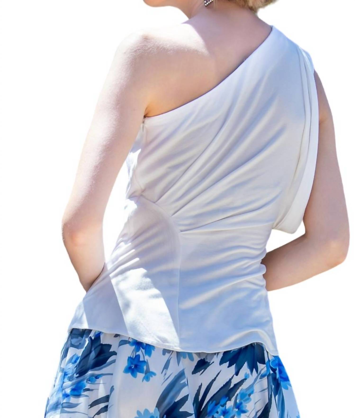 O Top Daphne esbanja glamour com seu design de um ombro só, com pregas drapeadas que descem em cascata e envolvem elegantemente a cintura. Garante um caimento perfeito com elástico no busto e um prático zíper lateral. Confeccionada em 90% poliéster e 10% elastano, esta peça é recomendada para lavagem a seco e orgulhosamente fabricada nos EUA.