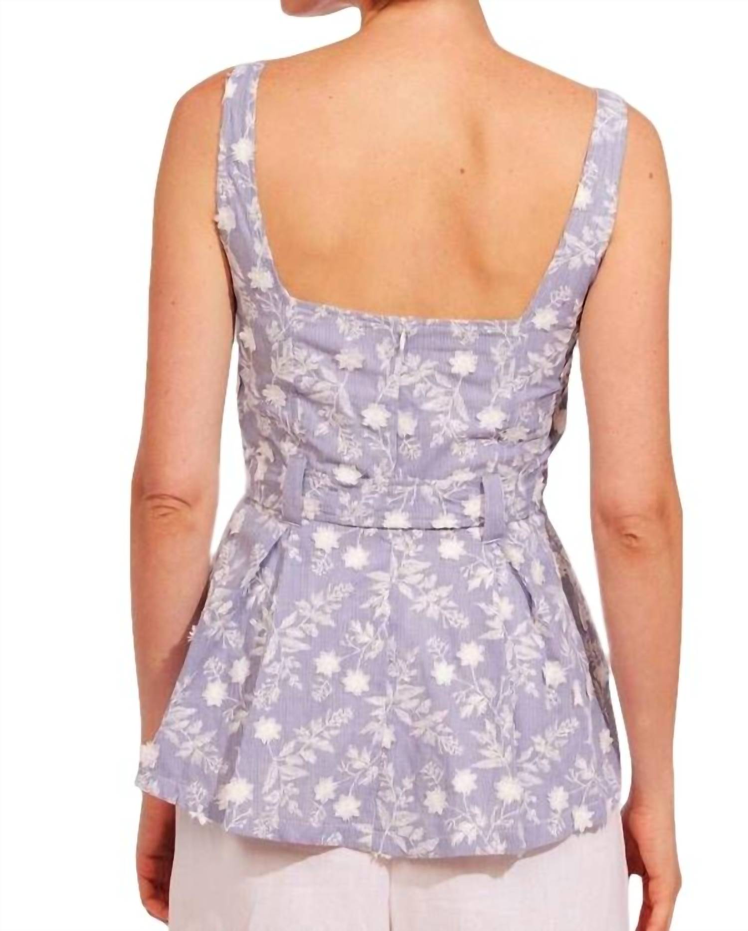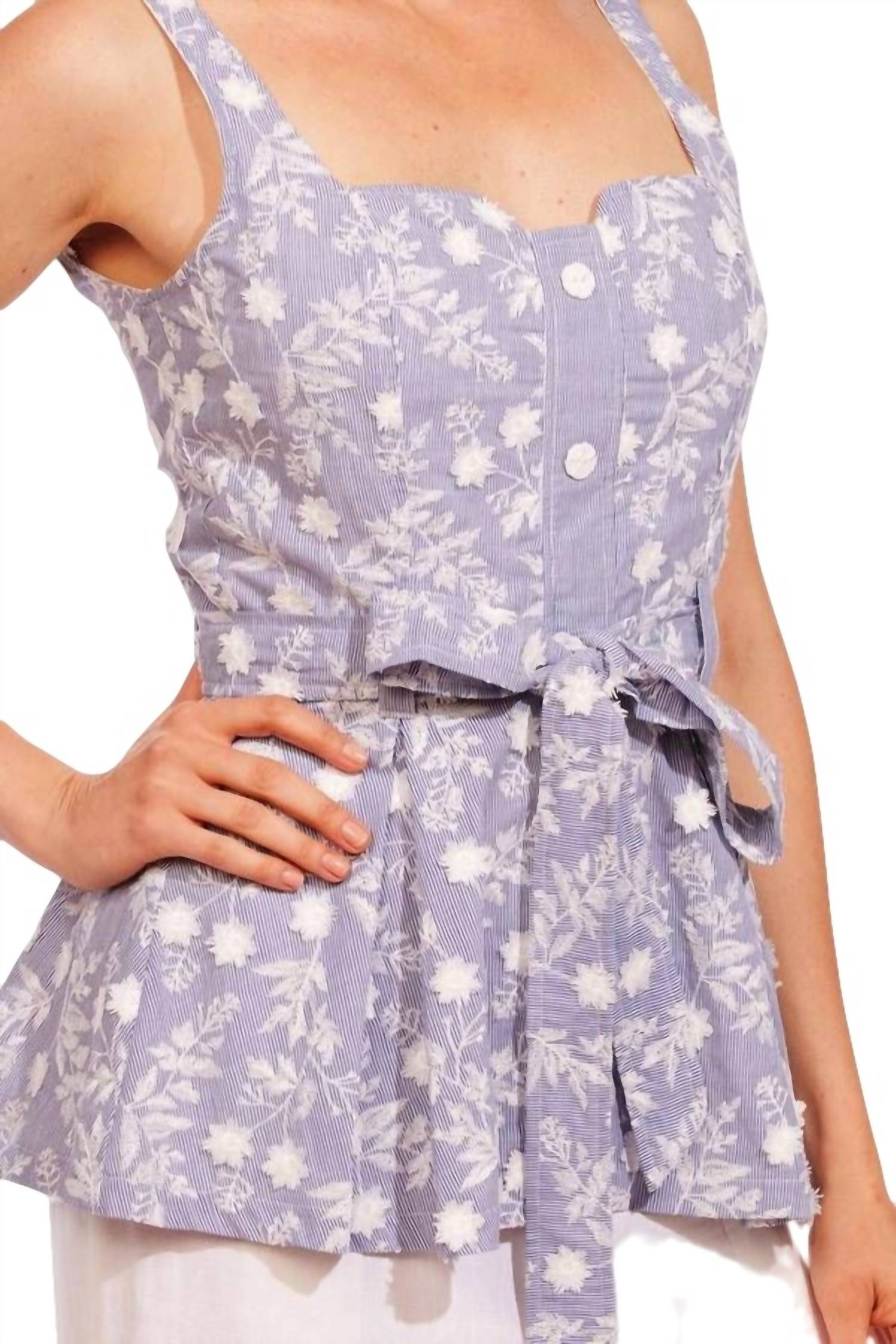 Blusa sem mangas. Amarração na cintura. Fecho de botão. 100% algodão.