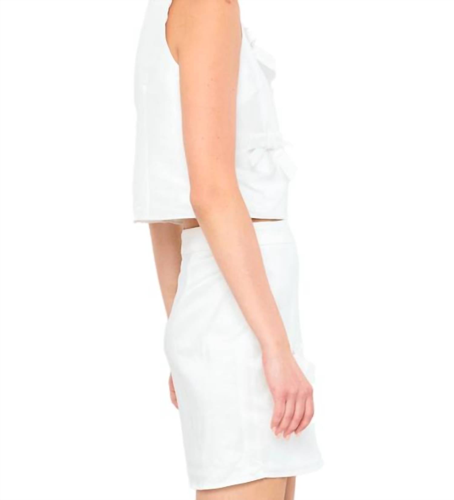 Cropped top featuring a boat neckline and sleeveless design. Crafted from a blend of 100% polyester shell and 92% polyester, 8% spandex lining for comfort and durability.