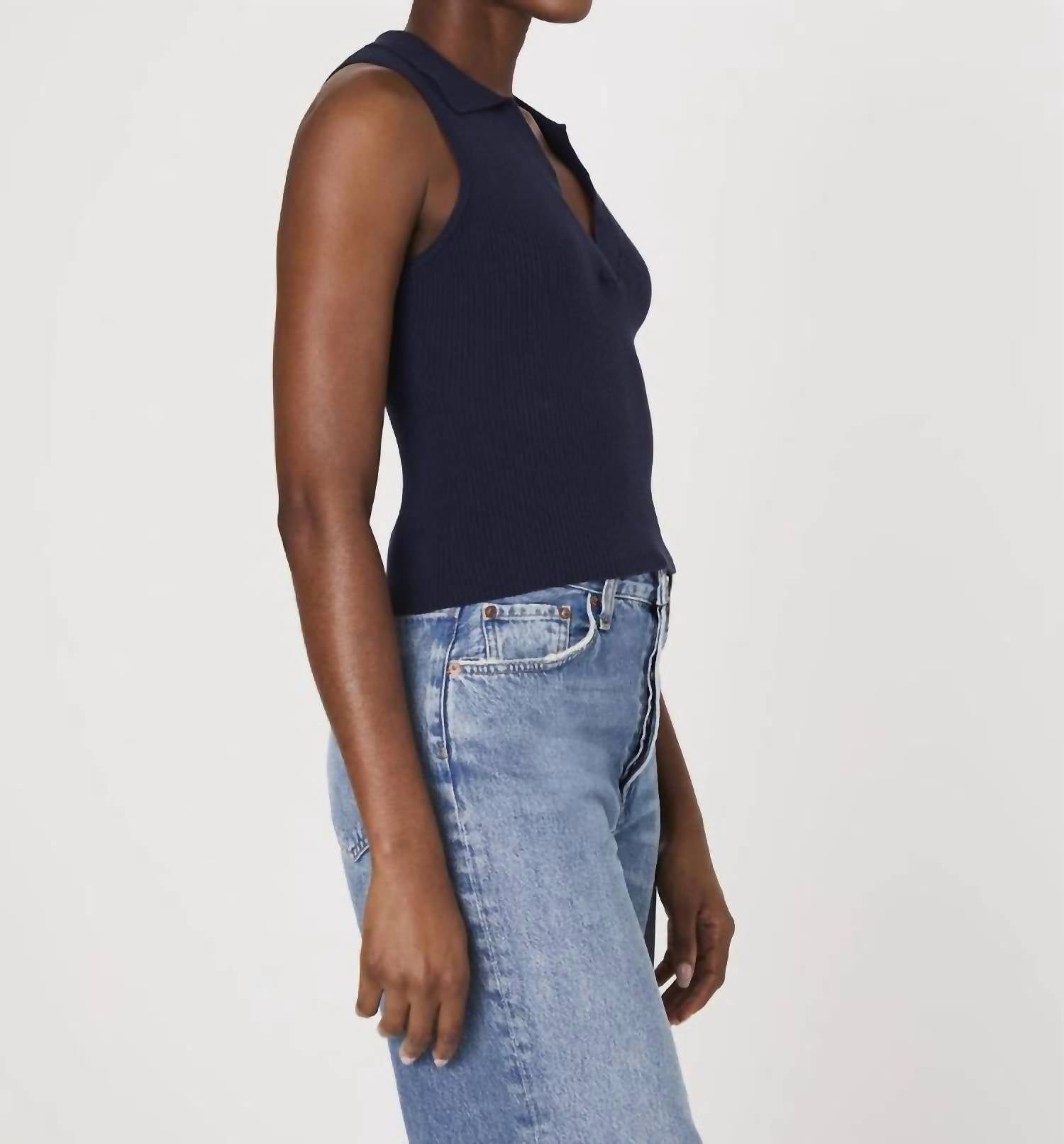The perfect tank top for those warmer weather seasons. Introducing the Mozza Knit Tank Top by FRENCH CONNECTION, a blend of sophistication and style perfect for warm weather. This sleeveless, textured sweater vest features a chic v-neckline and shirt collar, crafted from a soft, stretchy cotton rib knit in elegant white. Designed without pockets, it offers a minimalist aesthetic ideal for vacation, meetings, or gatherings. Closure: Pull on. Care: Machine wash and lay flat to dry.