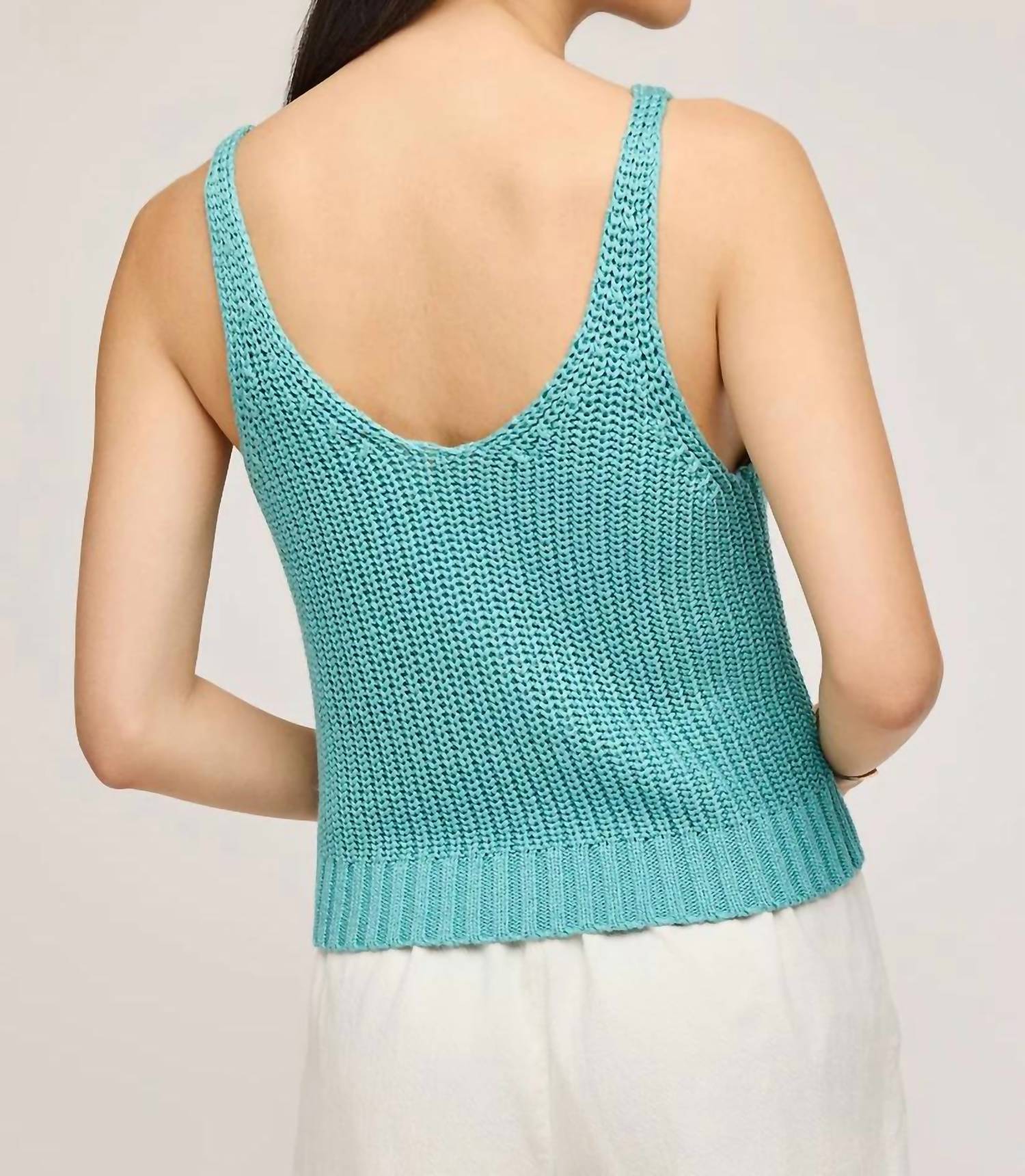 A regata perfeita para as estações mais quentes. A regata Lizzie é feita de um fio macio com ponto meia-casaco. O decote em V frontal e traseiro é perfeito para o dia a dia.